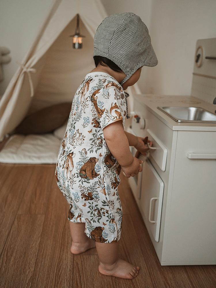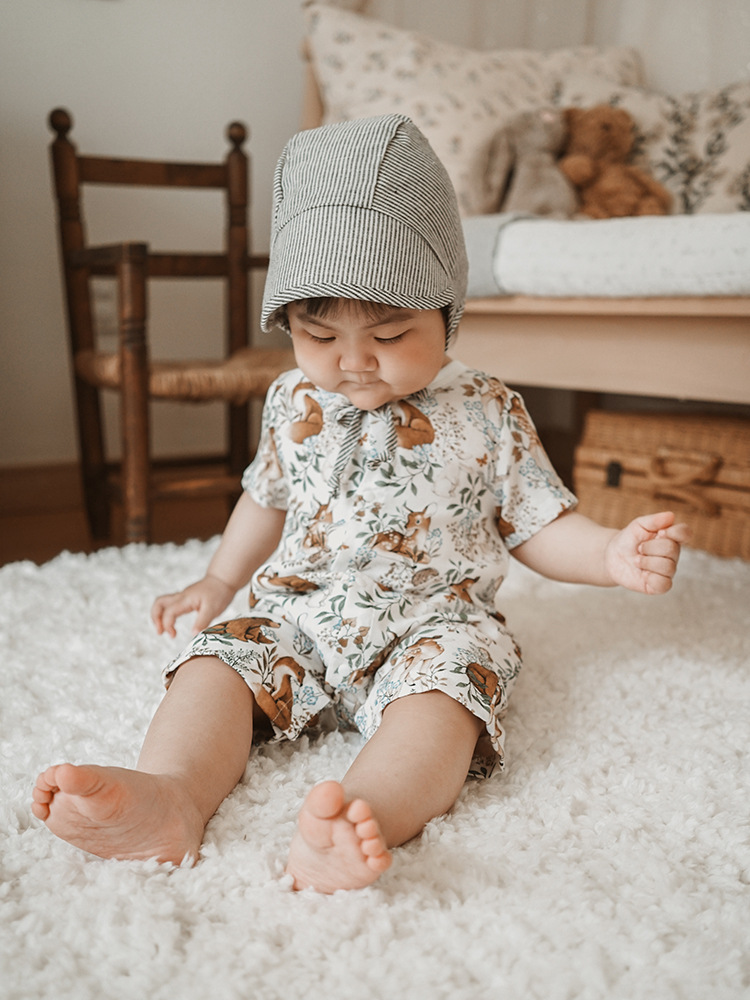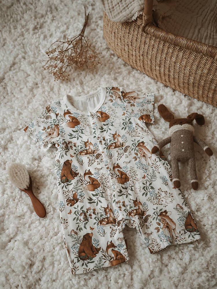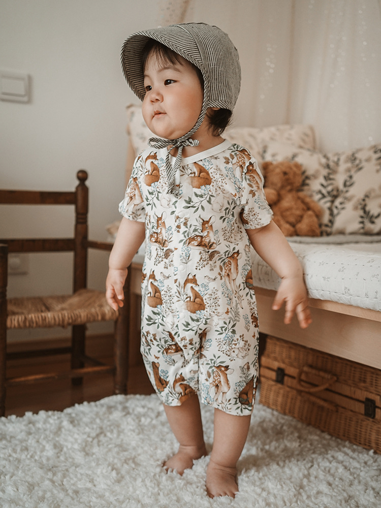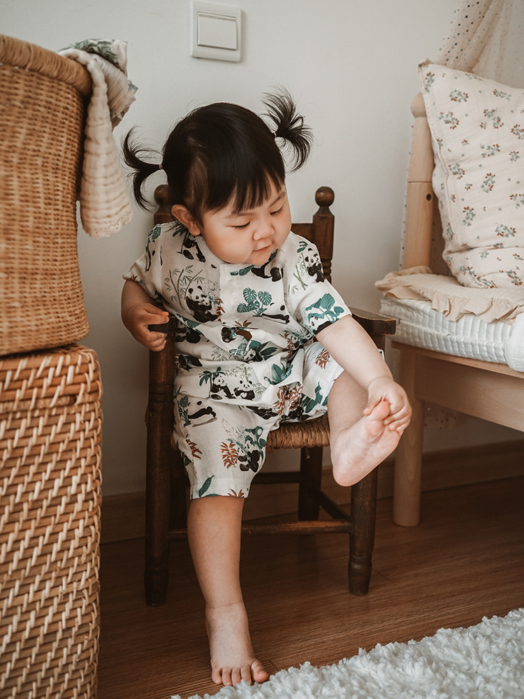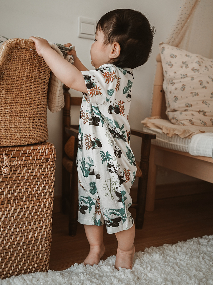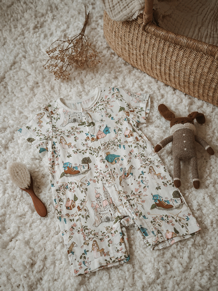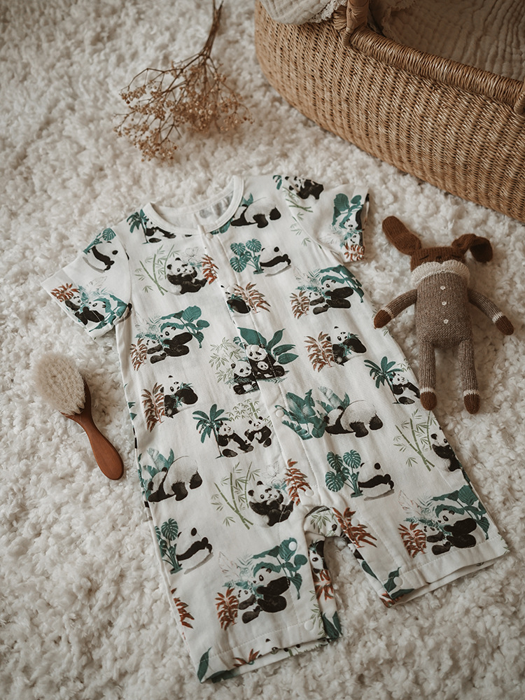 2025 여름 아기 대나무 면 점프 슈트 카테고리 a 아기 거즈 점프 슈트 아기 옷 얇은 아기 크롤링 슈트