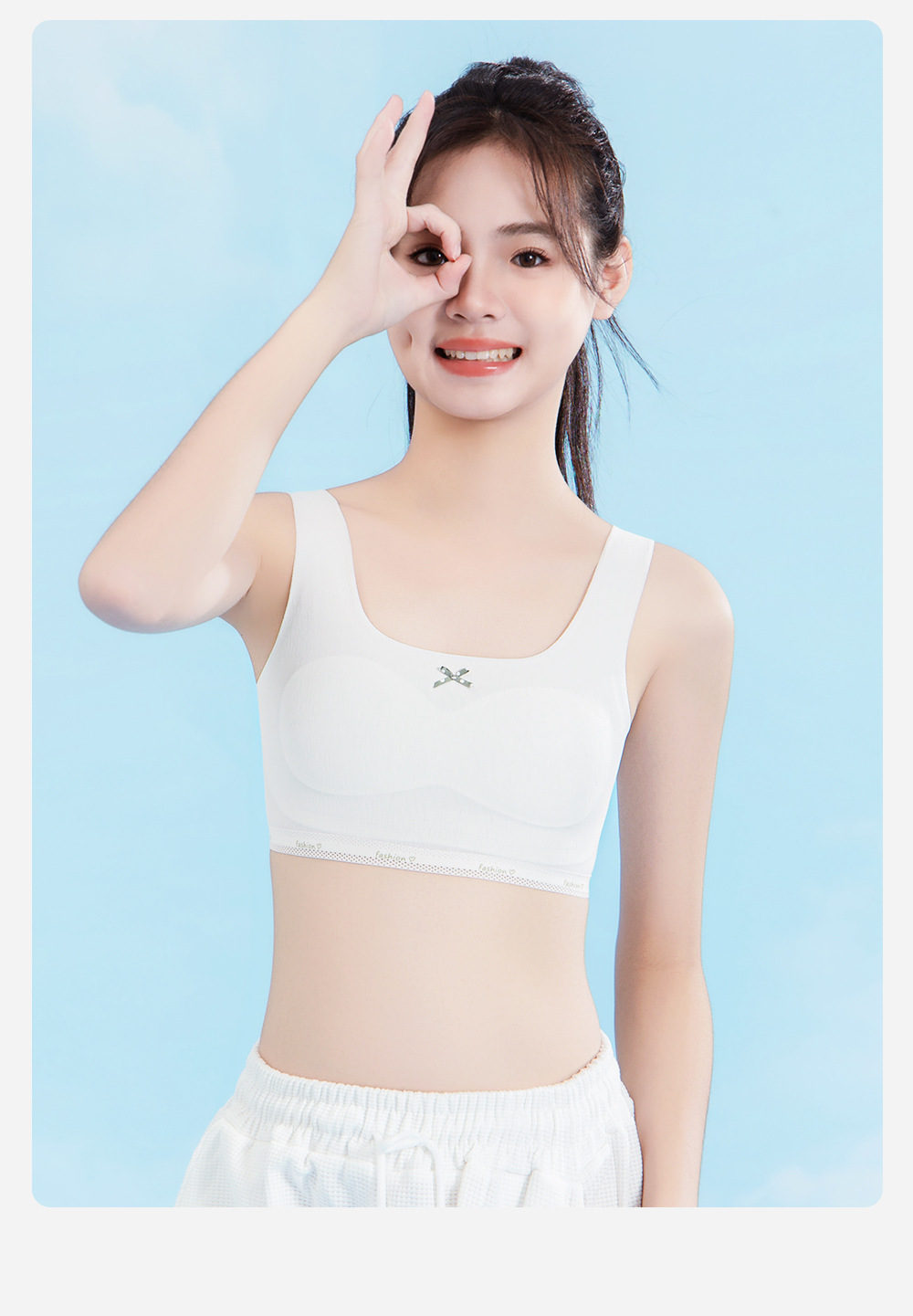 소녀 브래지어 스틸 링 제로 감각 통기성 스포츠 속옷 추적없는 고정 컵 정립 방지 꼽추 어린이 속옷
