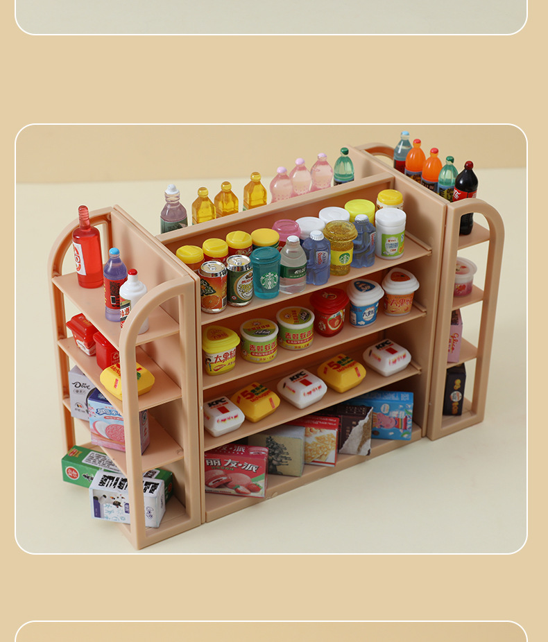 미니 시뮬레이션 슈퍼마켓 4 선반 소형 제품 음료 간식 어린이 놀이 홈 장난감 모델 디스플레이 랙