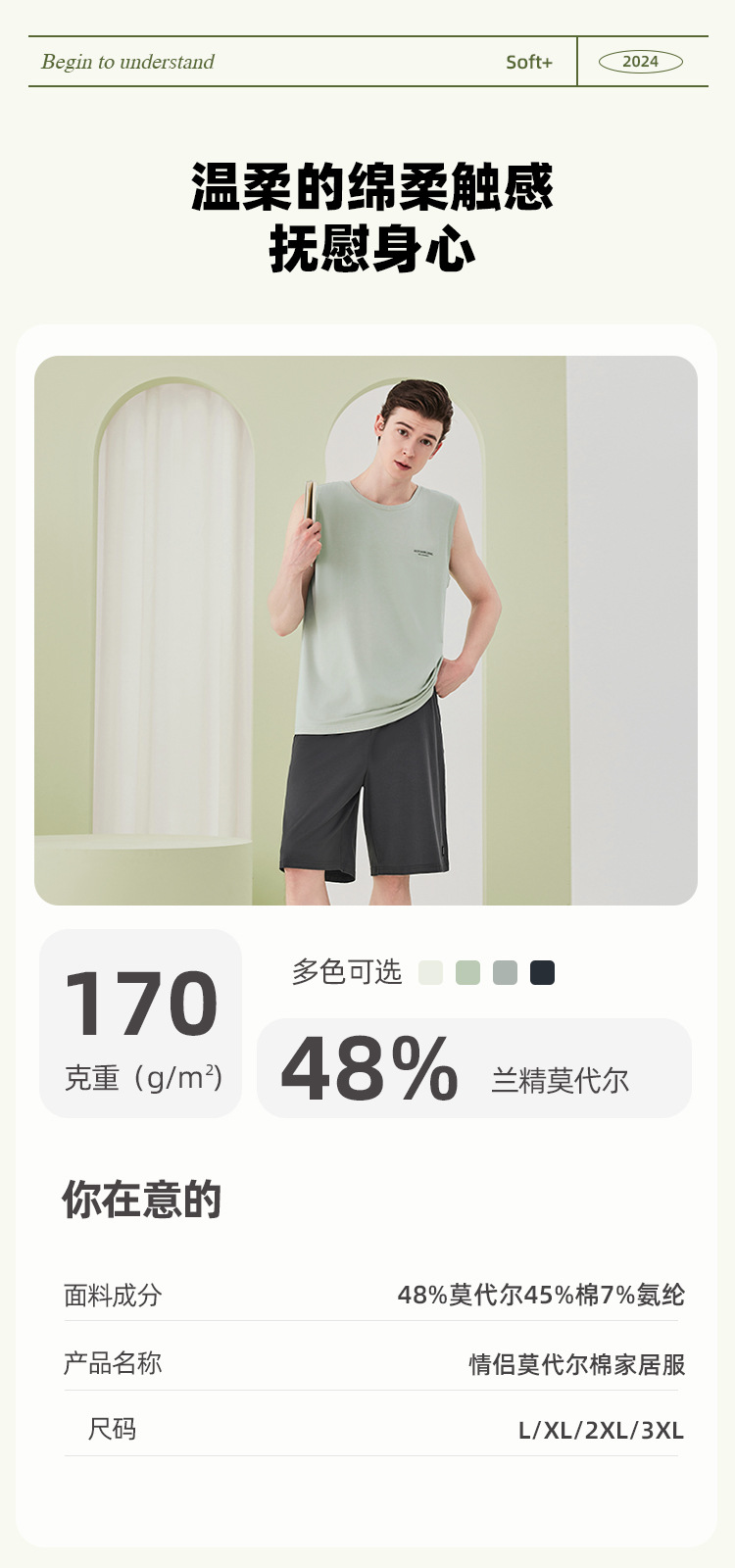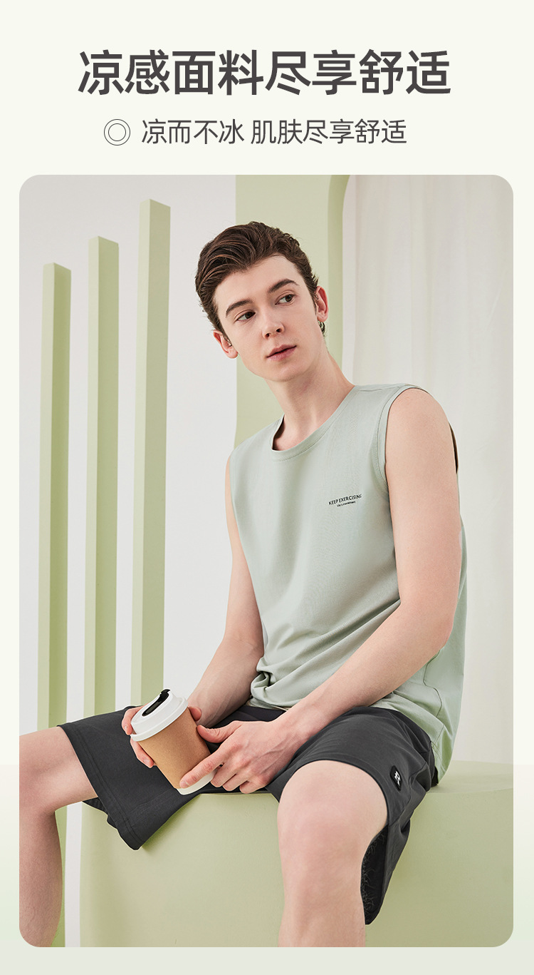 렌징 모달 코튼 잠옷 남성 여름 조끼 반바지 정장 얇은 남성 잠옷 홈웨어 외부 착용 가능스토어 가기