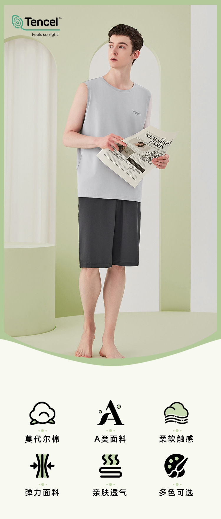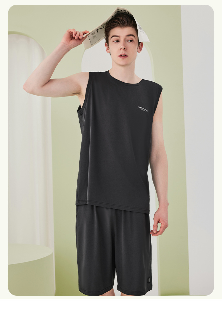 렌징 모달 코튼 잠옷 남성 여름 조끼 반바지 정장 얇은 남성 잠옷 홈웨어 외부 착용 가능