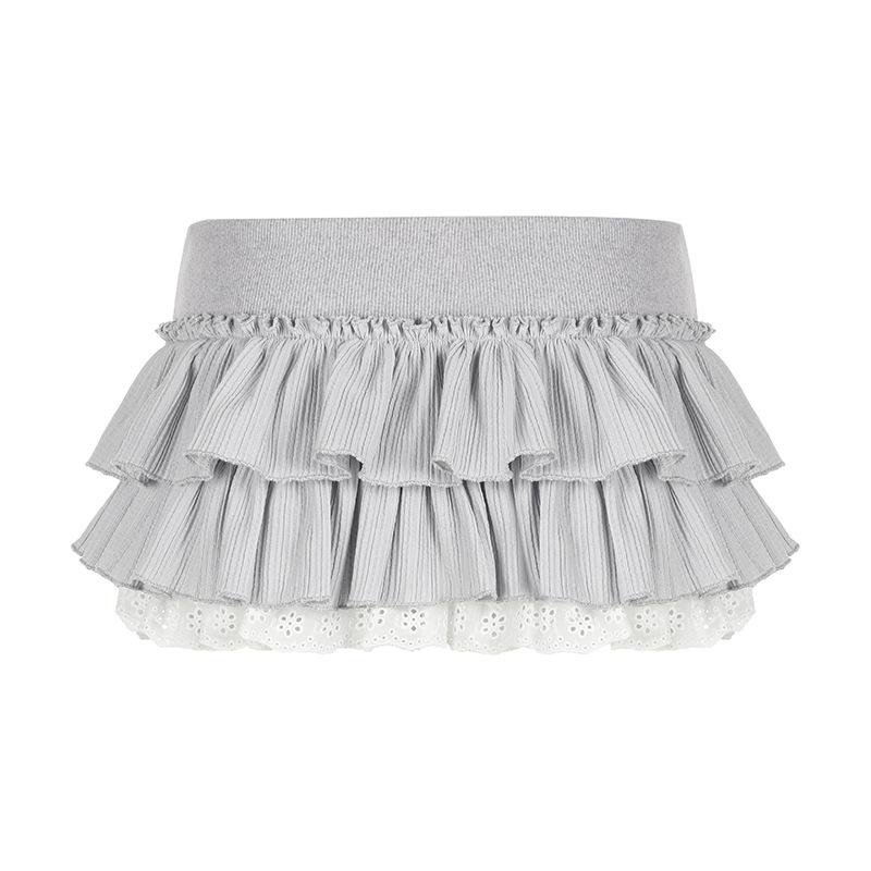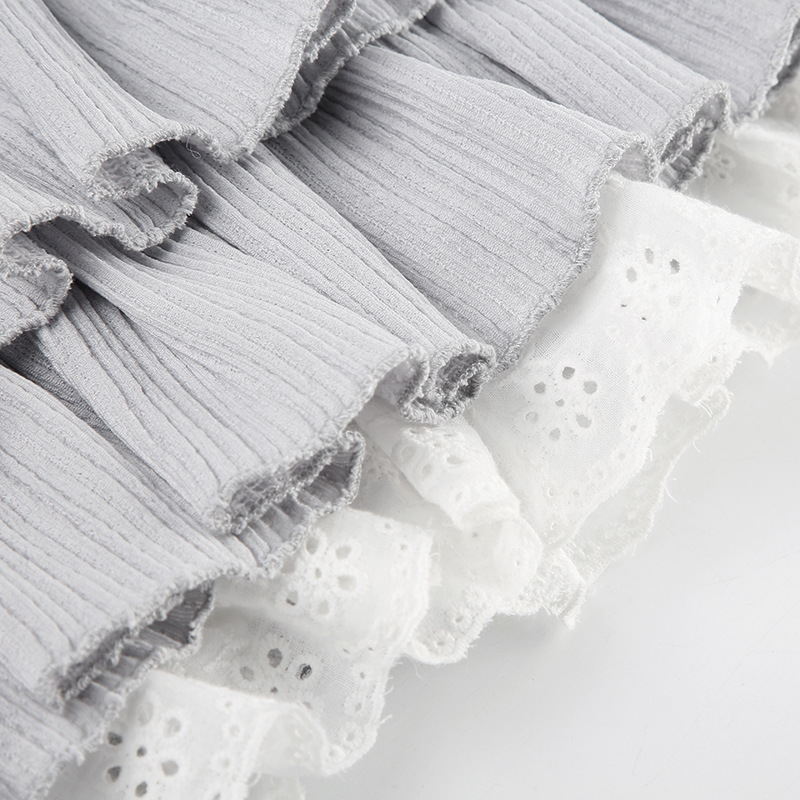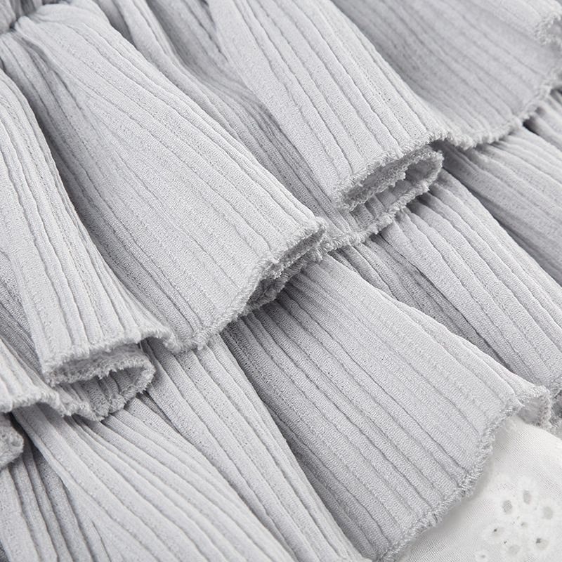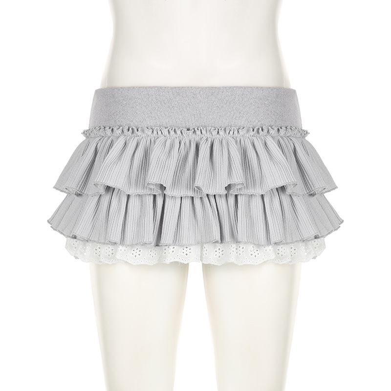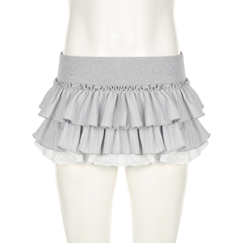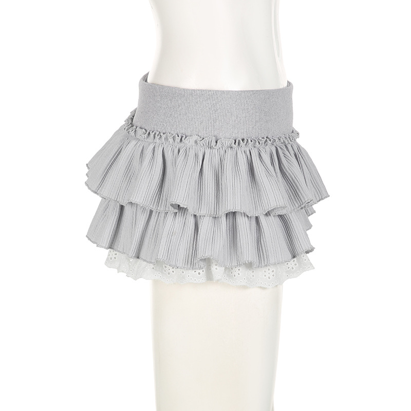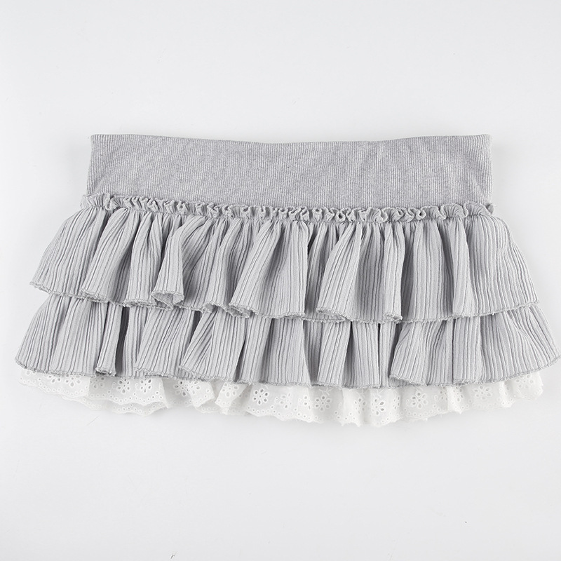 독립적인 섹시하고 달콤하고 매콤한 스타일의 순수한 욕망 주름 레이스 케이크 스커트 심플한 대비 컬러 그레이 연령 감소 스커트