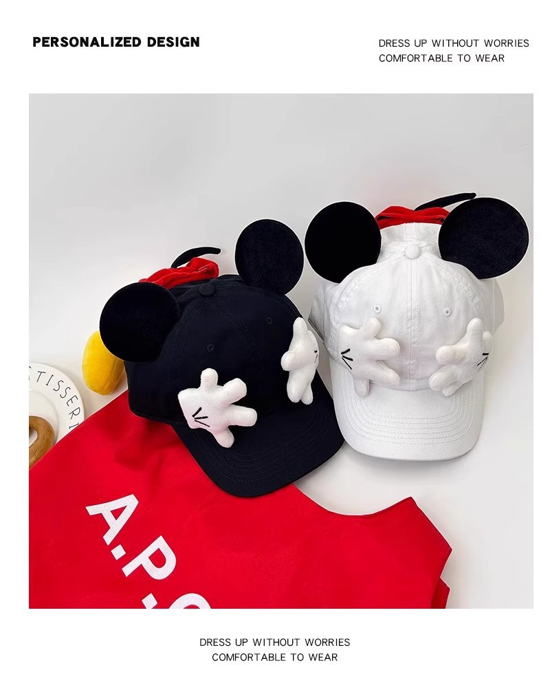 귀여운 야구 모자 만화 디자인 스푸핑 미키 귀여운 큰 귀 모양 수제 그물 붉은 사진 오리 혀 모자스토어 가기