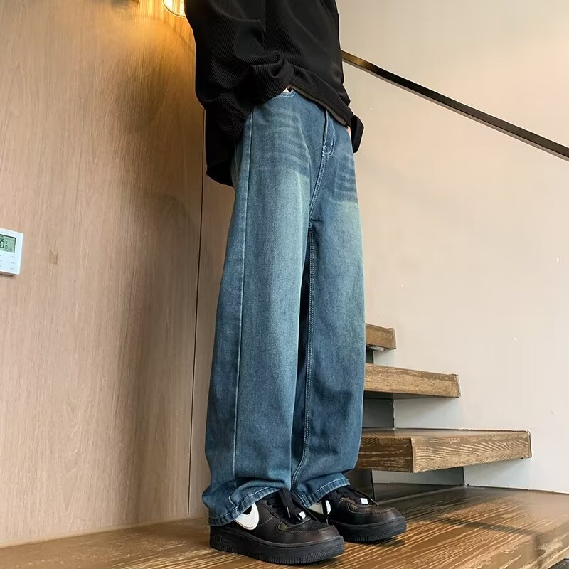 아메리칸 레트로 청바지 남성 스트레이트 루즈 봄 2024 새로운 트렌디 브랜드 하이 스트리트 워시 올드 캐주얼 바지스토어 가기