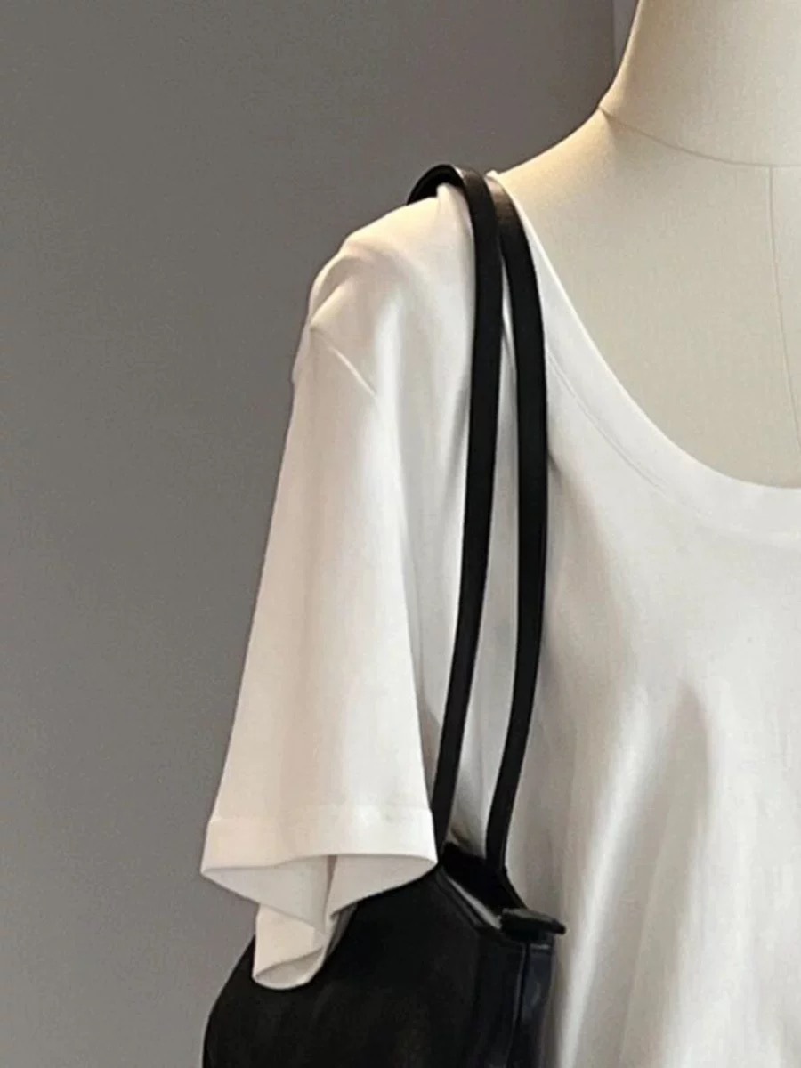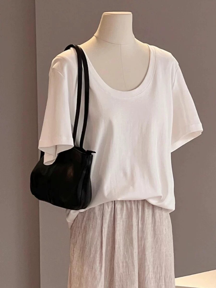 强货闭眼入!自留款无D推荐~纯棉大U领白色百搭短袖打底T恤女上衣