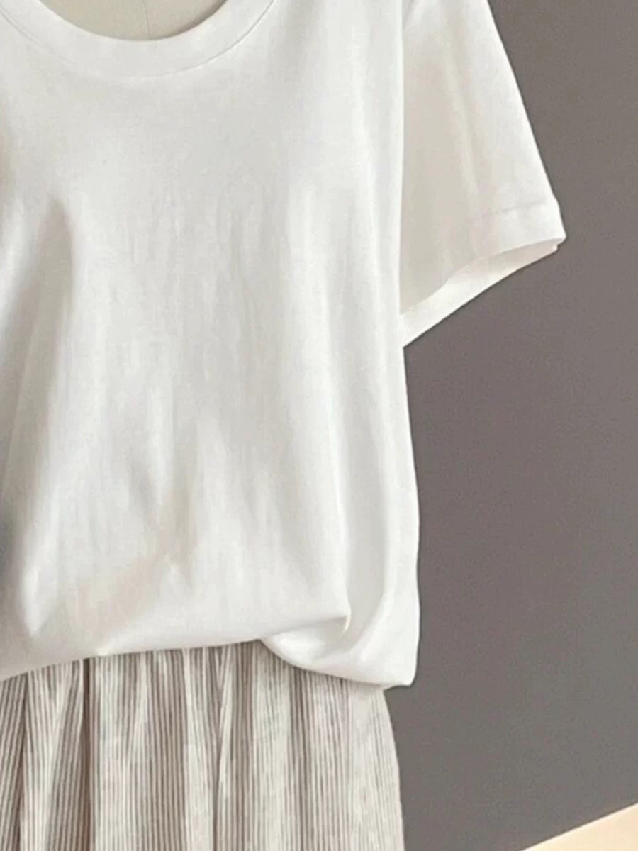 여름 강한 상품이 눈을 감아! 자기 보유 비 D 추천 ~ 대형 U 칼라 화이트 조커 반소매 기본 티셔츠 여성용 탑스토어 가기