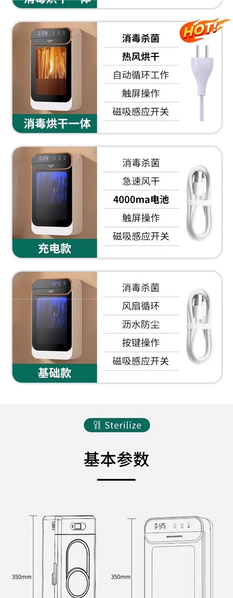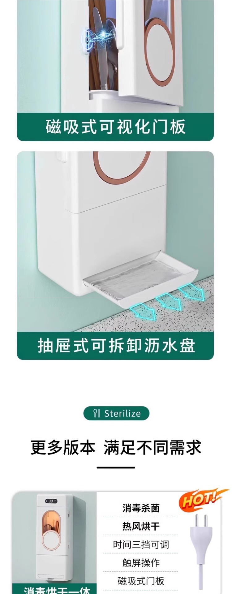 • 소독과 건조를 한번에★디지털 디스플레이★플러그인 모델/그린