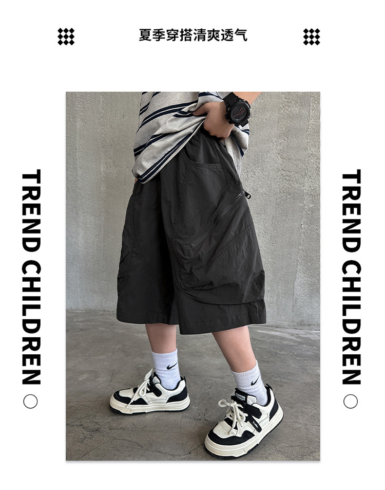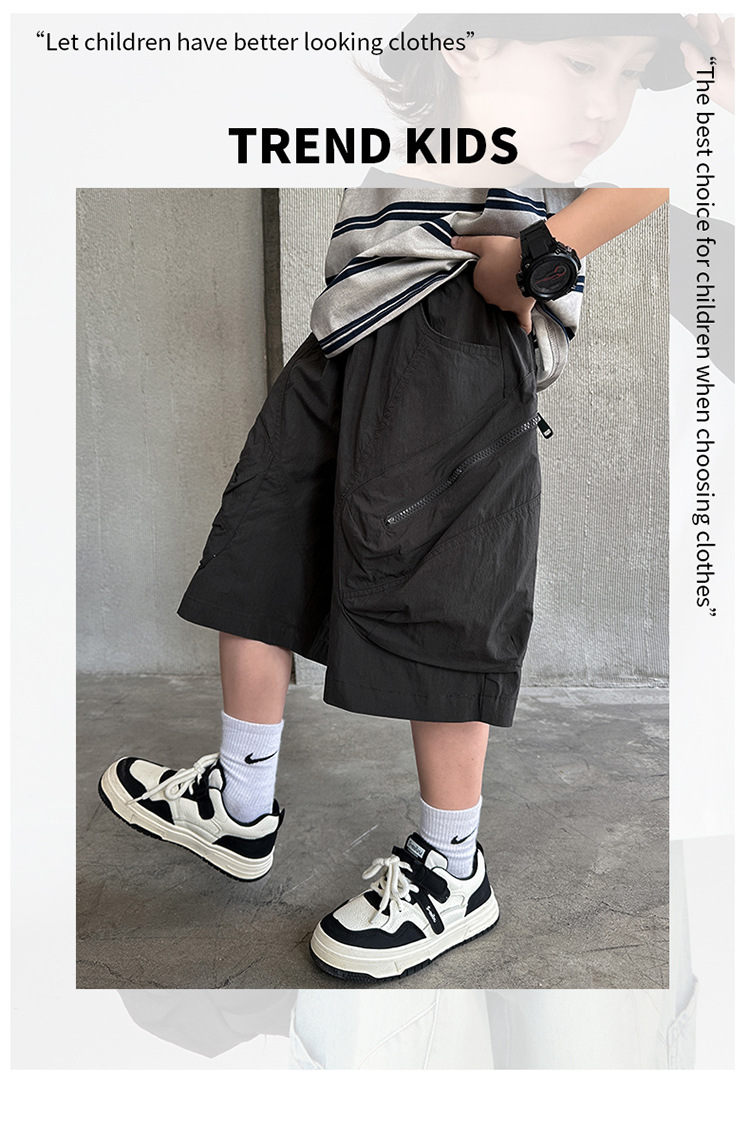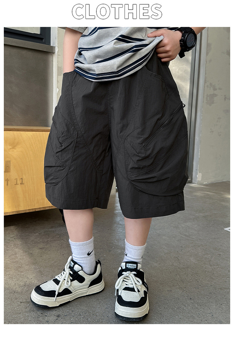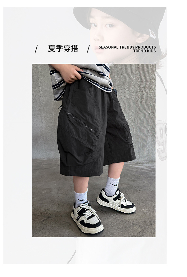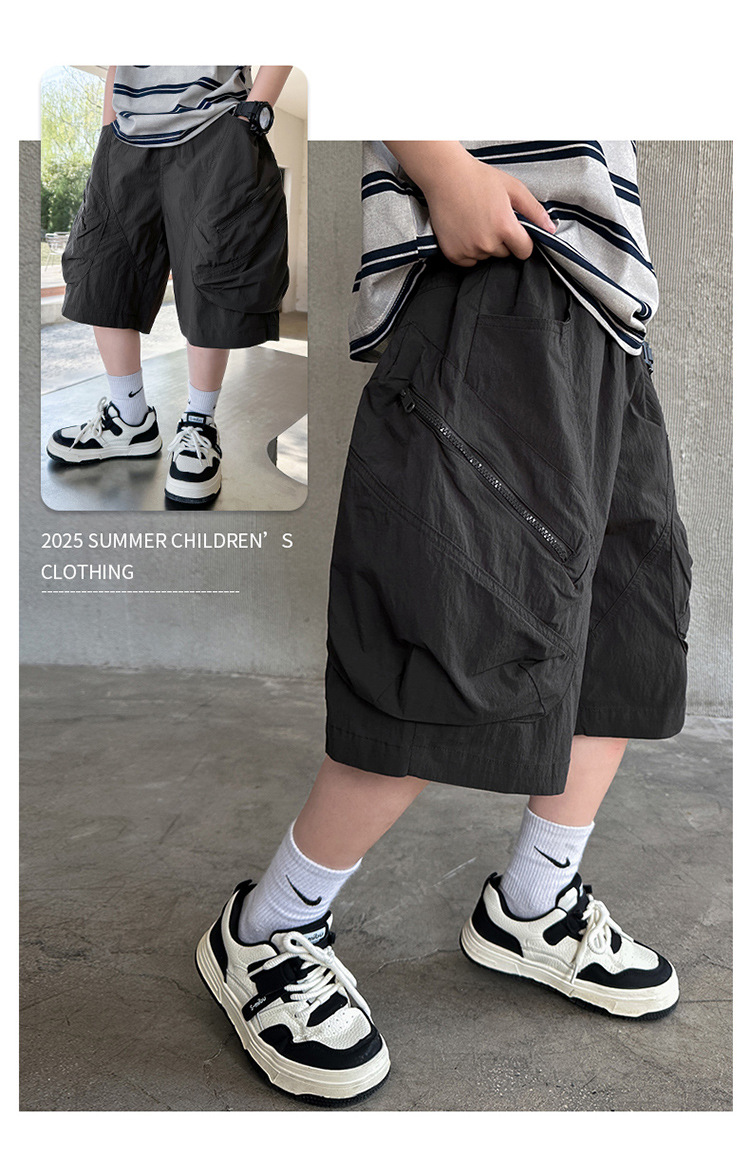아동용 바지 소년 여름 얇은 중간 길이 바지 2025 새로운 스타일 중대형 어린이 소년 여름 작업복 반바지 유행