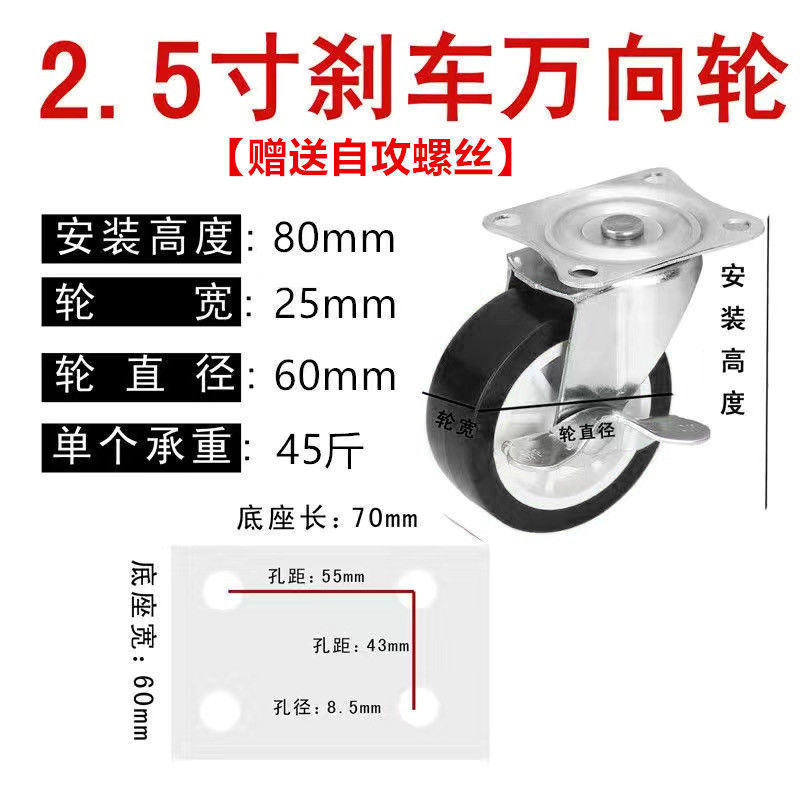 하드웨어 휠/1 ~ 3 인치 휠 브레이크 휠 트롤리 방향 휠 플랫 베드 무거운 휠 대외 무역 공장 도매스토어 가기