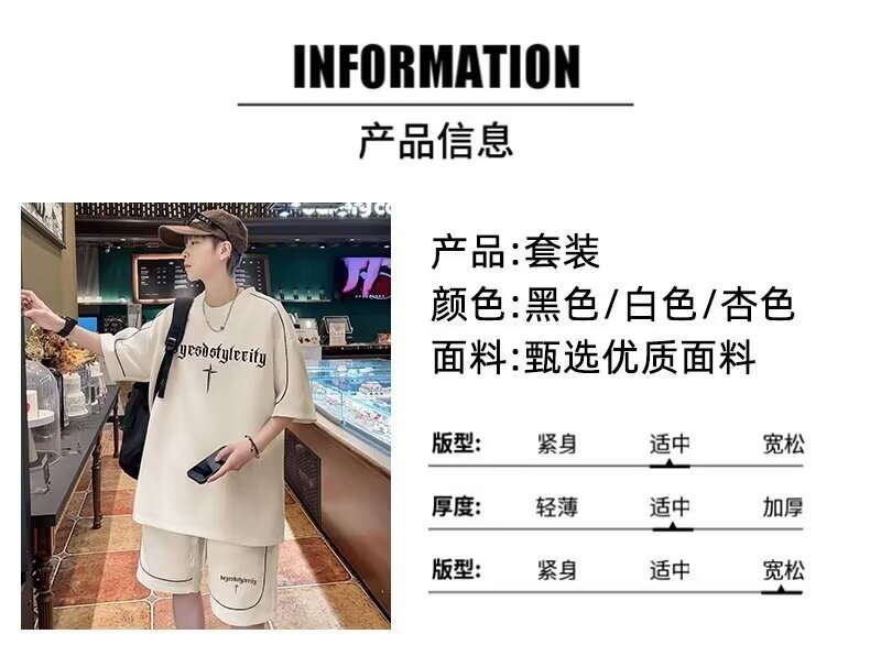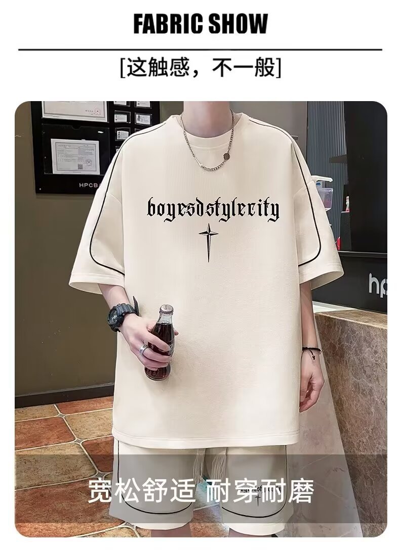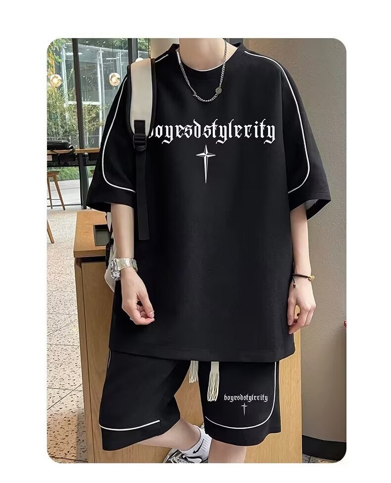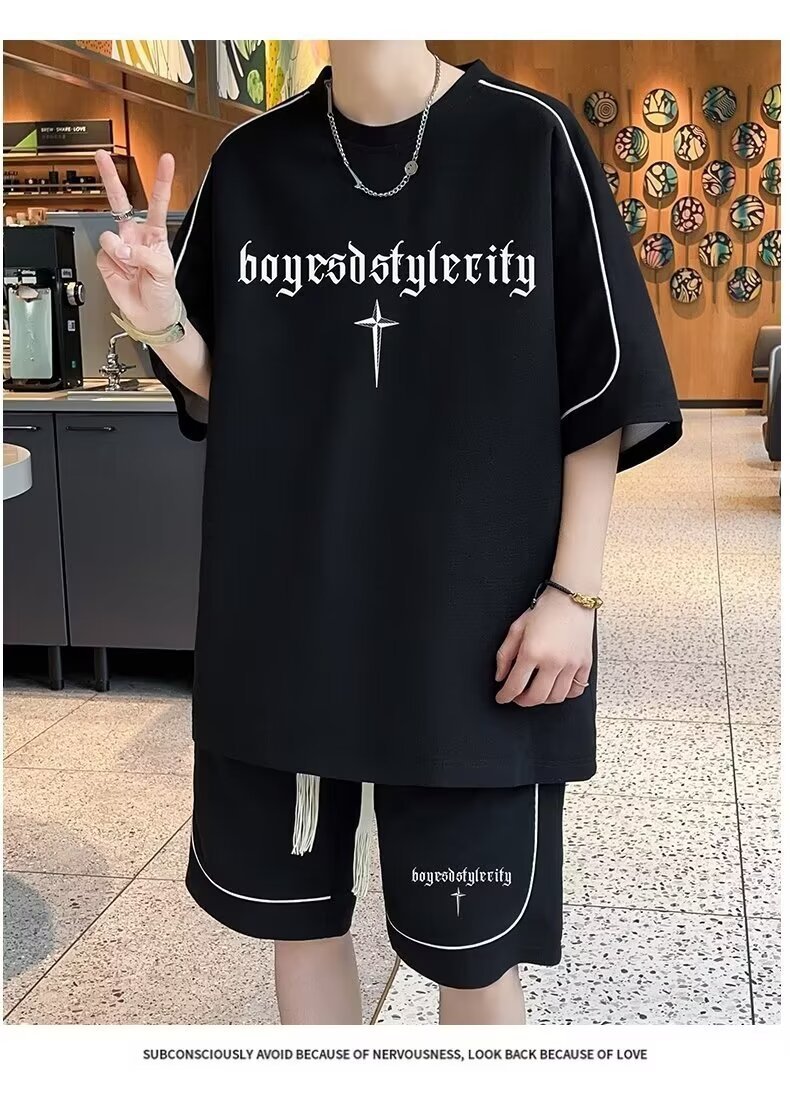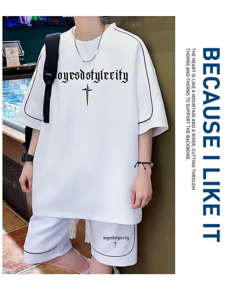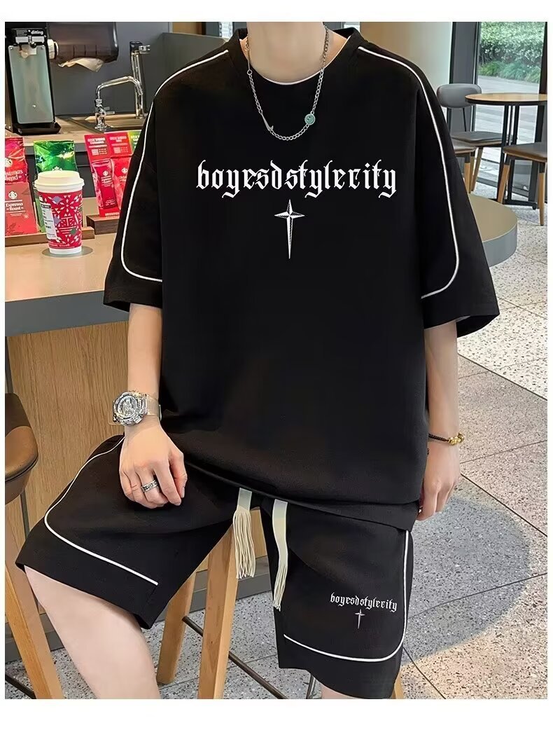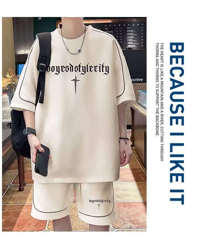 2024 홍콩 스타일 새로운 여름 홍콩 스타일 대형 파인애플 체크 학생 남성 반팔 티셔츠 캐주얼 반바지 정장 패션