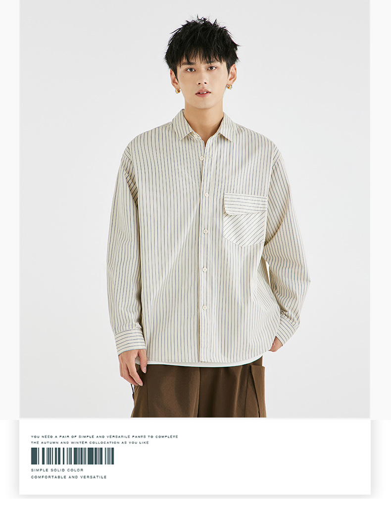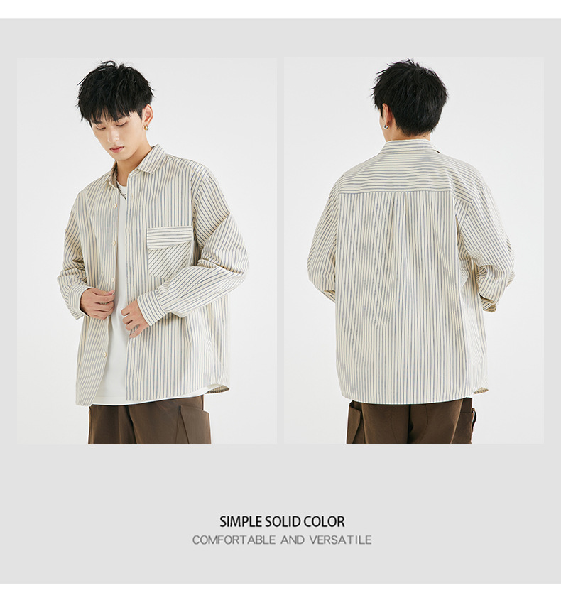 순수 코튼 스트라이프 긴팔 셔츠 남성 가을 미국 복고풍 유행 브랜드 루즈 캐주얼 패션 소년 셔츠 재킷스토어 가기