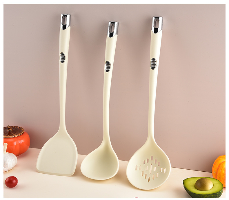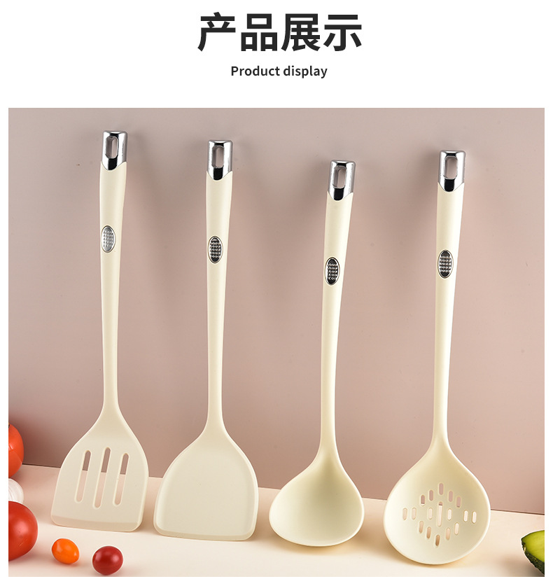 새로운 4종 실리콘 조리도구 세트, 고온 조리용 주걱, 국자, 체, 프라이팬용 주걱, 가정용 주방용품 조리 세트스토어 가기