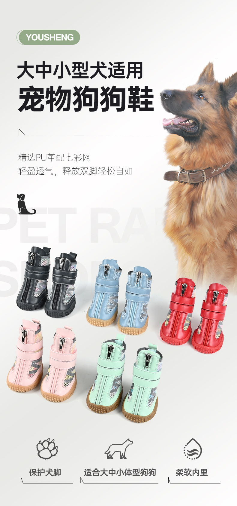국경 간 새로운 통기성 애완 동물 신발, 미끄럼 방지 및 내마모성, 야외 더러운 방지 애완 동물 발 커버, 애완 동물 개 신발 커버 도매