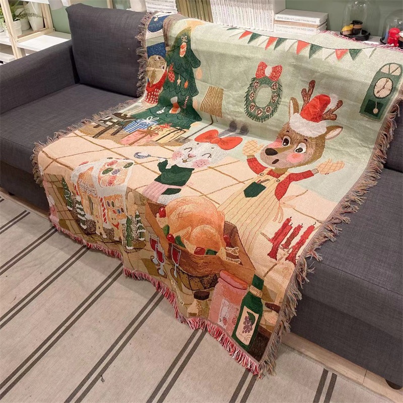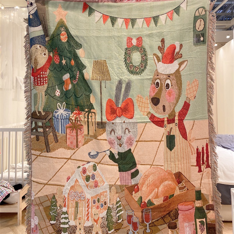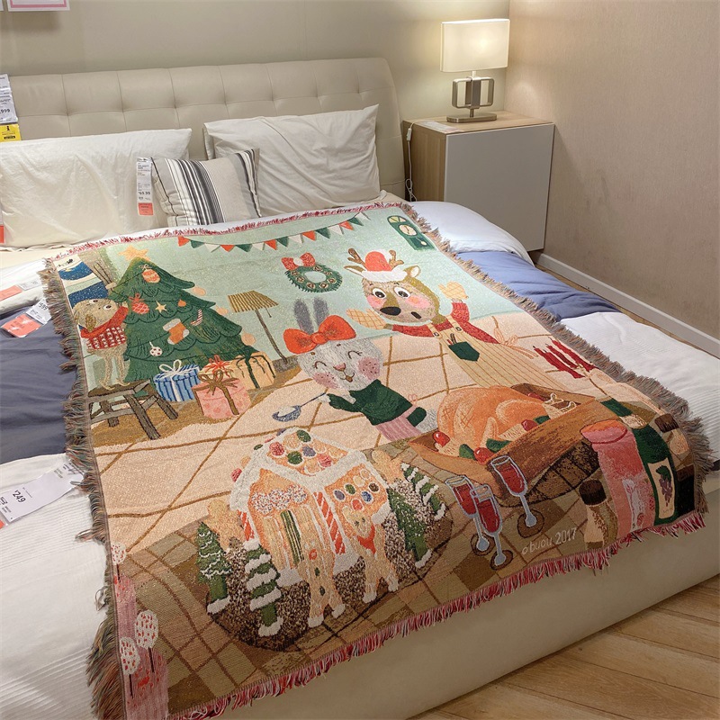用途:圣诞桌面装饰 沙发巾 盖布 披毯 盖布 挂布 床毯