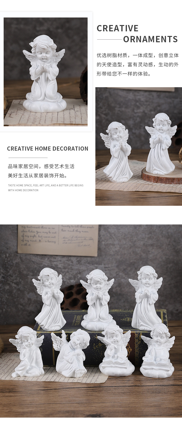 북유럽 순수한 흰색 작은 천사 장식품 미니 장식품 홈 침실 책상 상점 배경 장식 천사 장식품