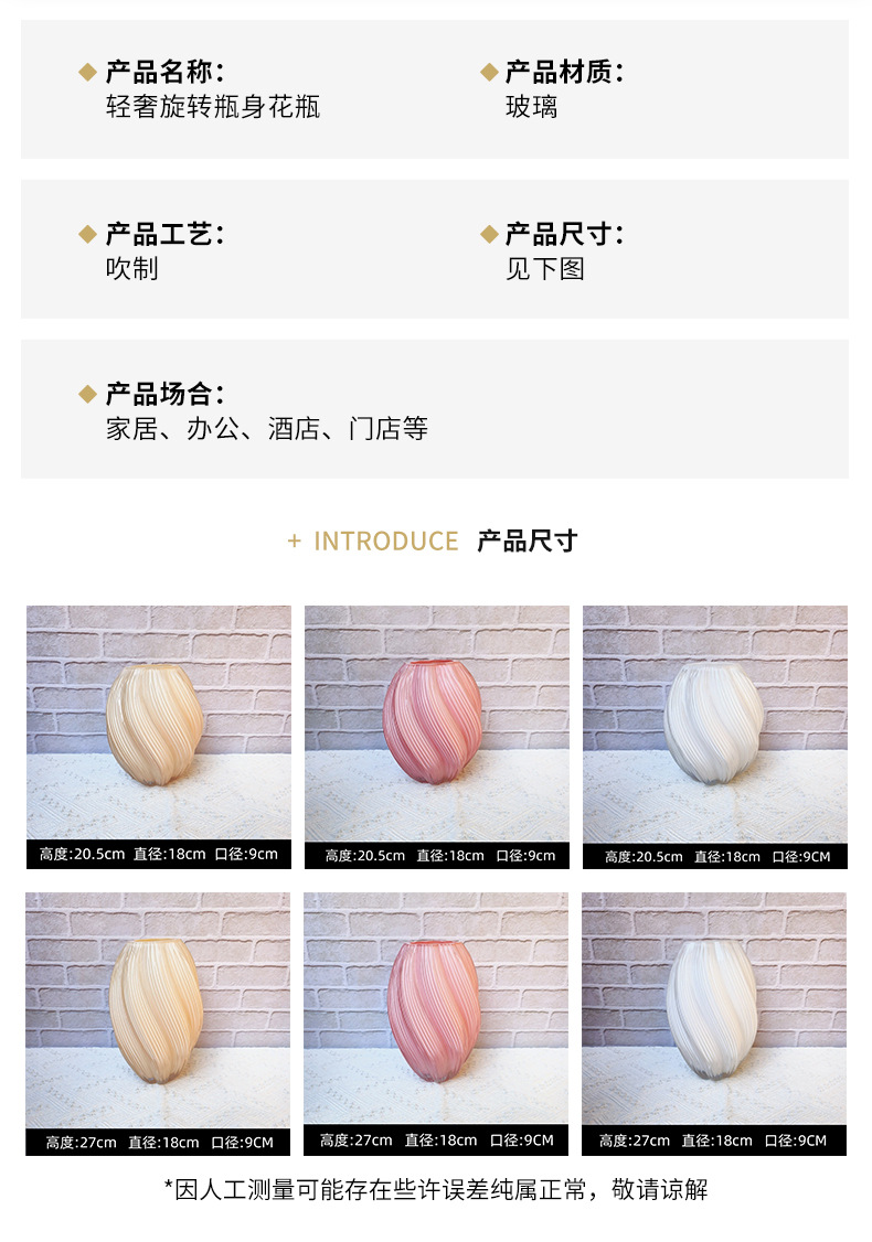 여러 가지 빛깔의 불타 오즈 회전 유리 꽃병 멀티 복도 거실 장식 꽃 배열 꽃병 프리미엄 감각스토어 가기