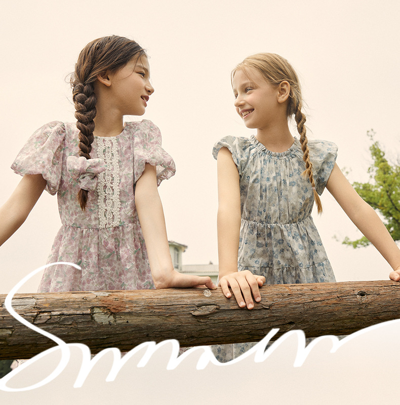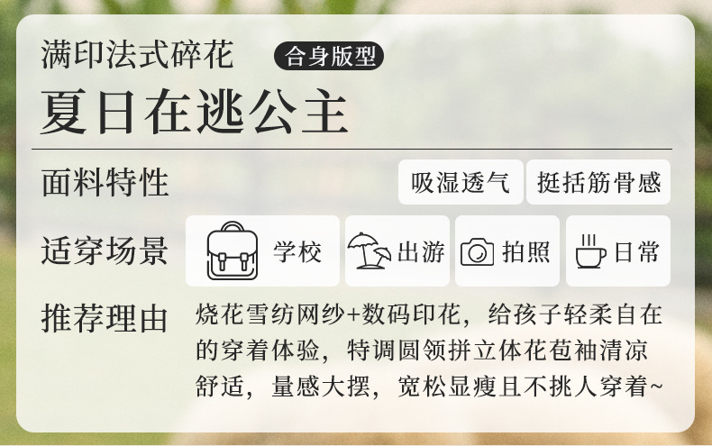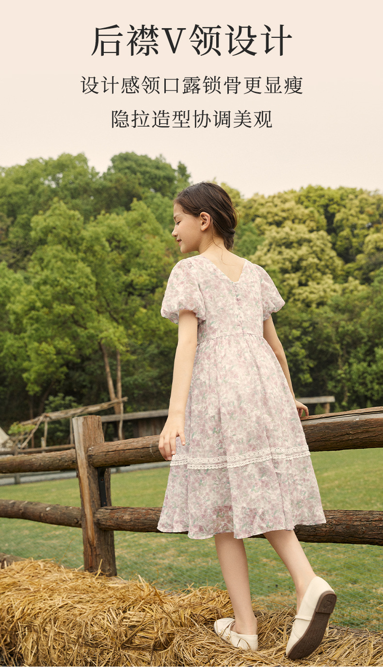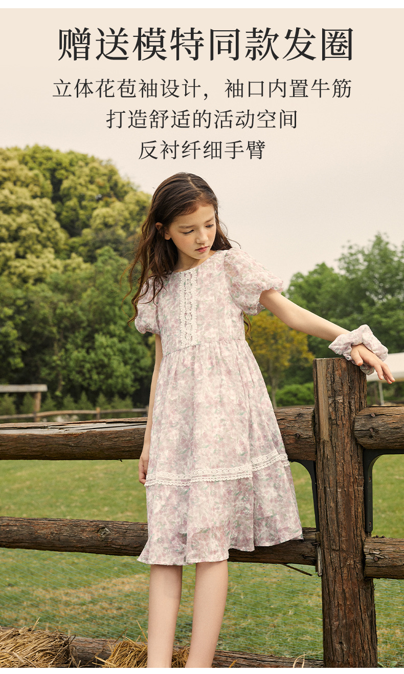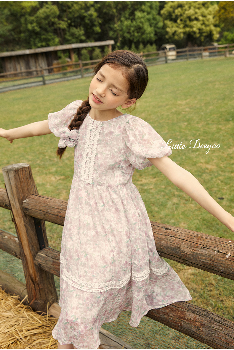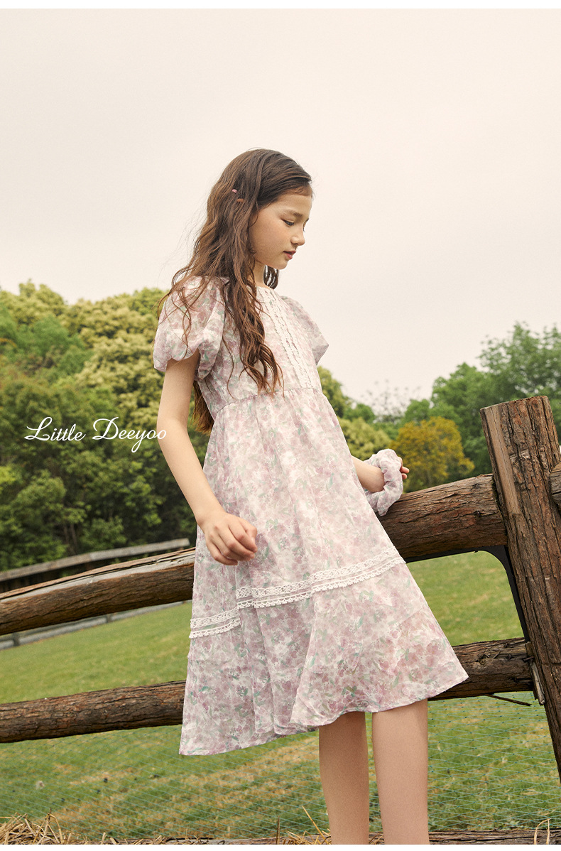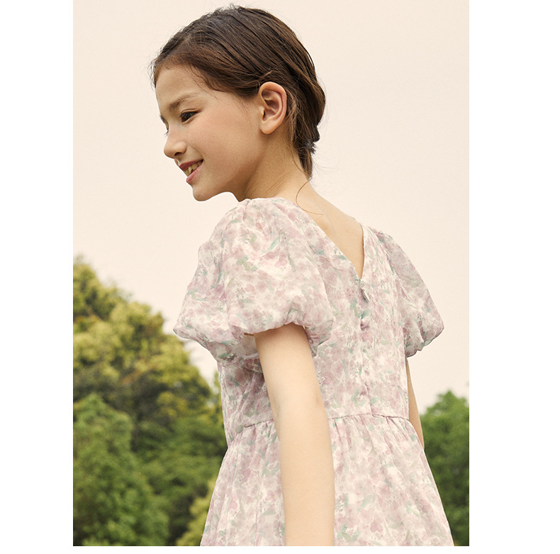 Sanluo 아동 의류 소녀 반팔 드레스 2024 여름 새로운 얇은 통기성 퍼프 슬리브 어린이 꽃 스커트