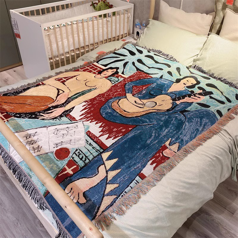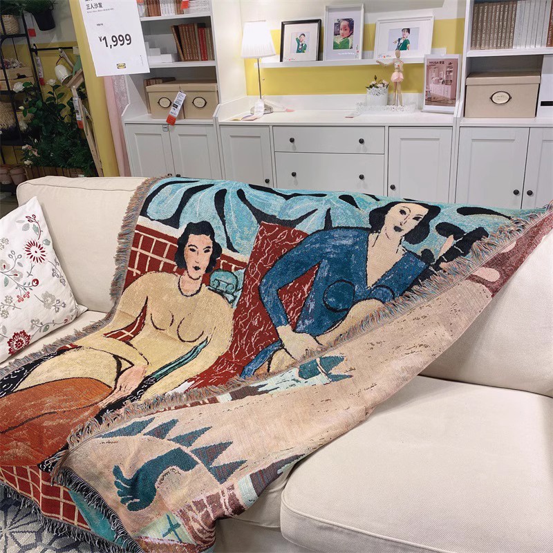 빈티지 유화 면화 실 커버 천 아트 술 태피스트리 마티스 다용도 장식 담요 커버 천 수건