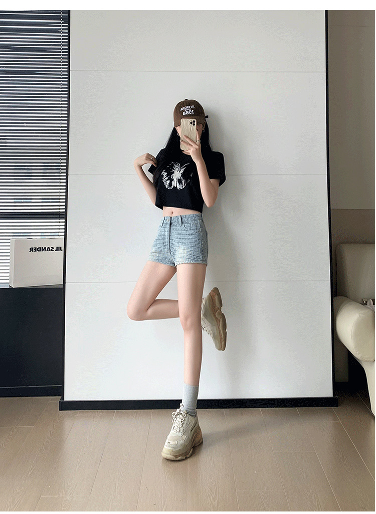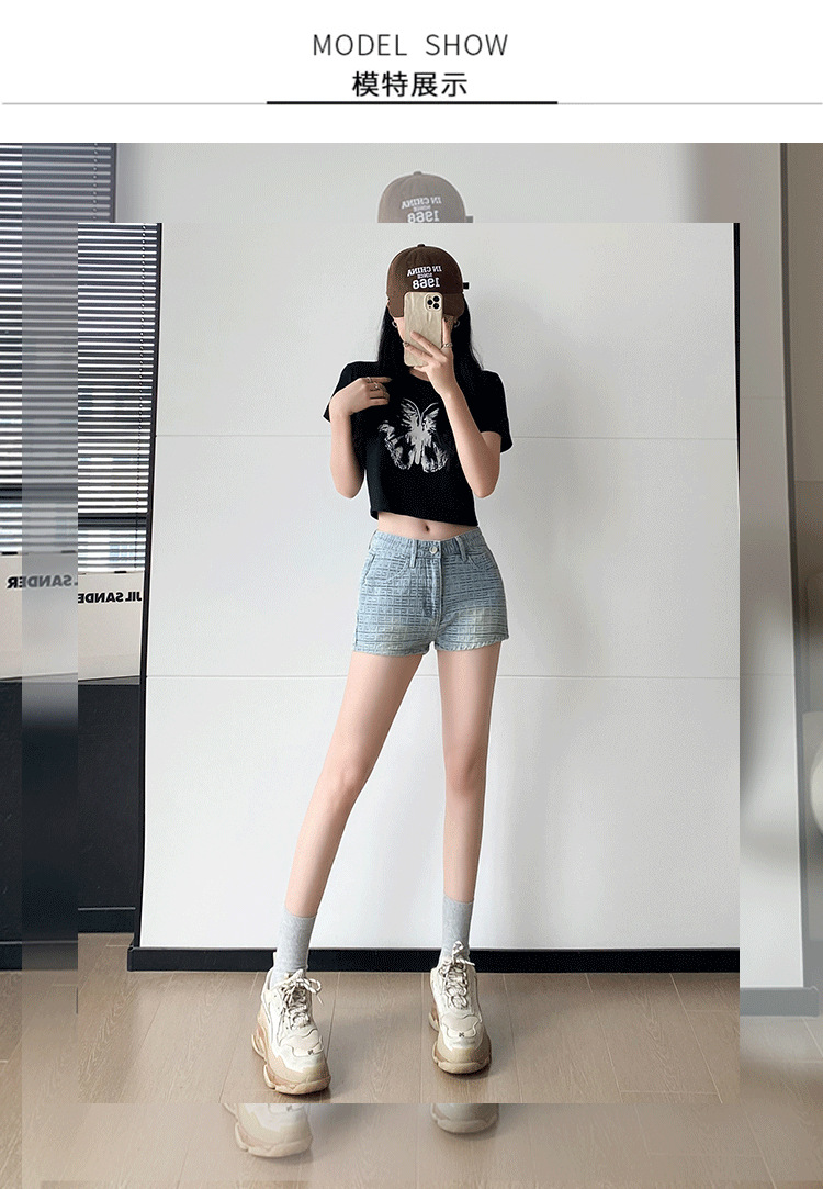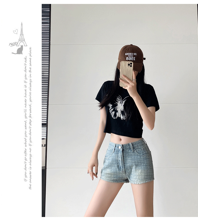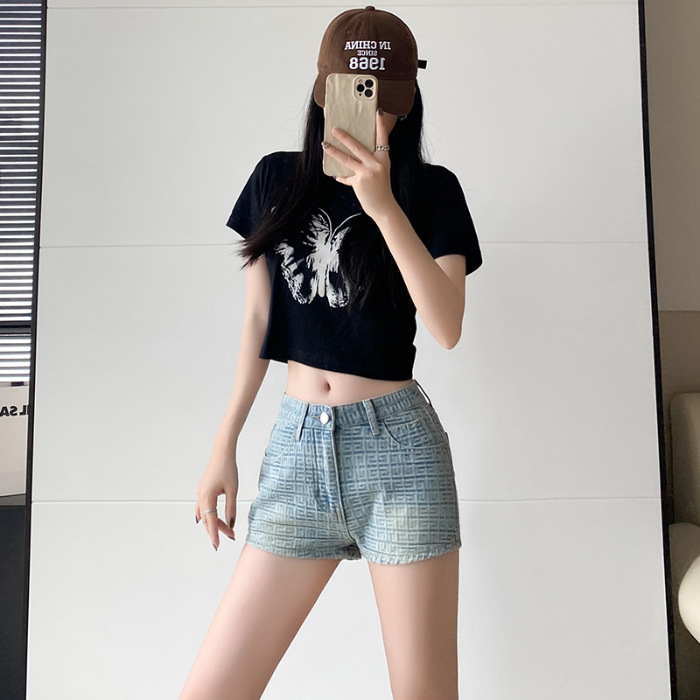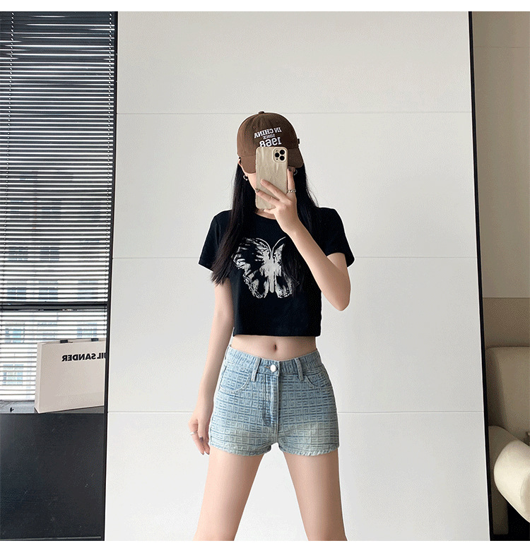 디자인 센스 레트로 오래 된 꽃 패션 데님 반바지 여성 낮은 허리 2024 여름 새로운 슬림 핏 슬리밍 틈새 핫 바지스토어 가기