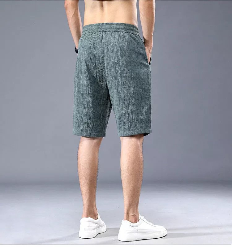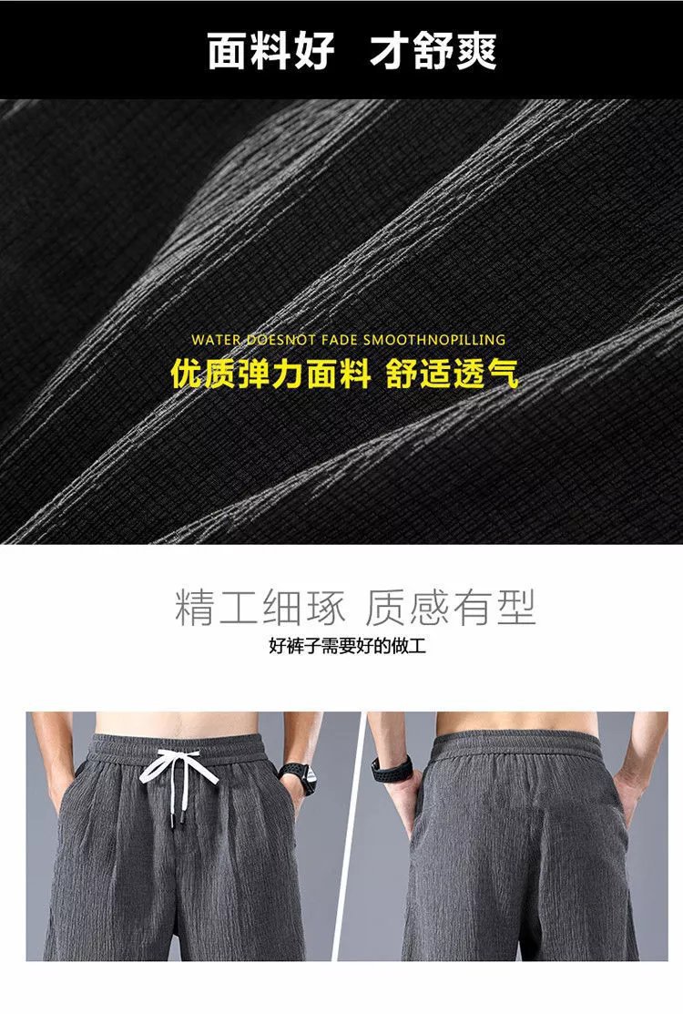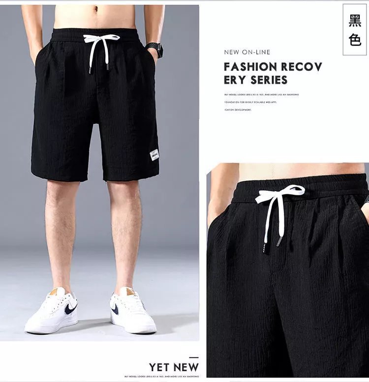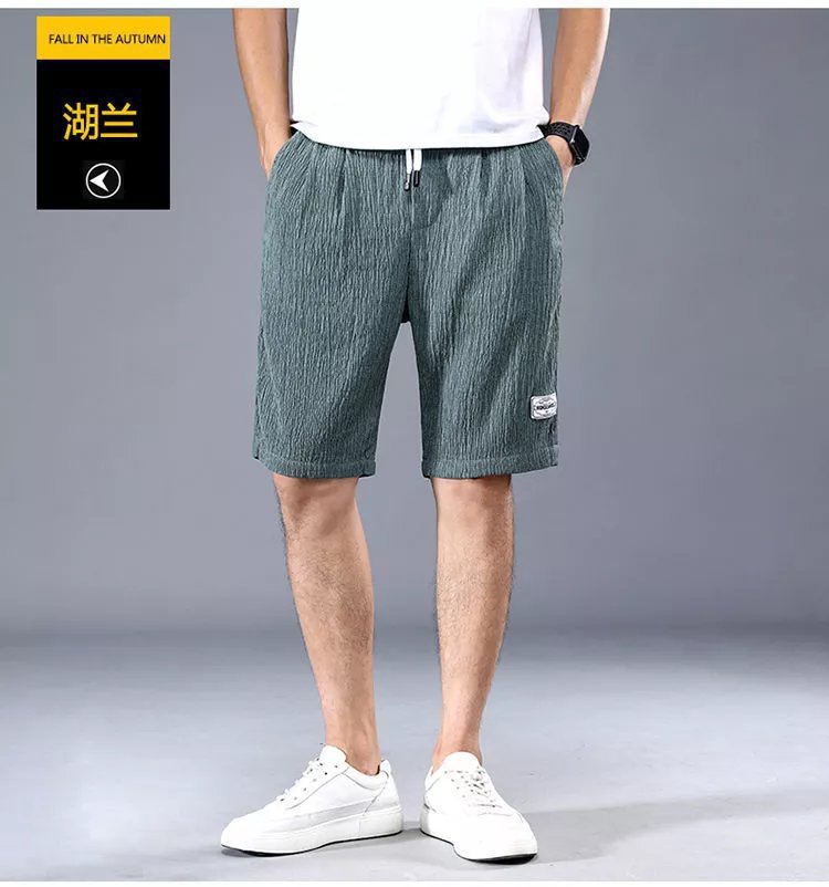 아이스 실크 반바지 남자의 얇은 스포츠 주름 바지 풀린 스트레이트 트렌디 캐주얼 바지 비치 바지