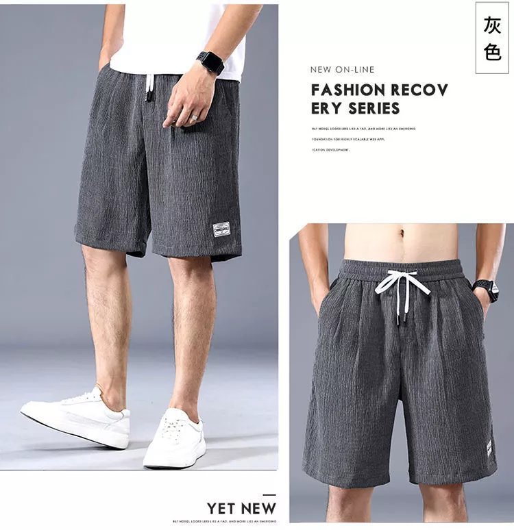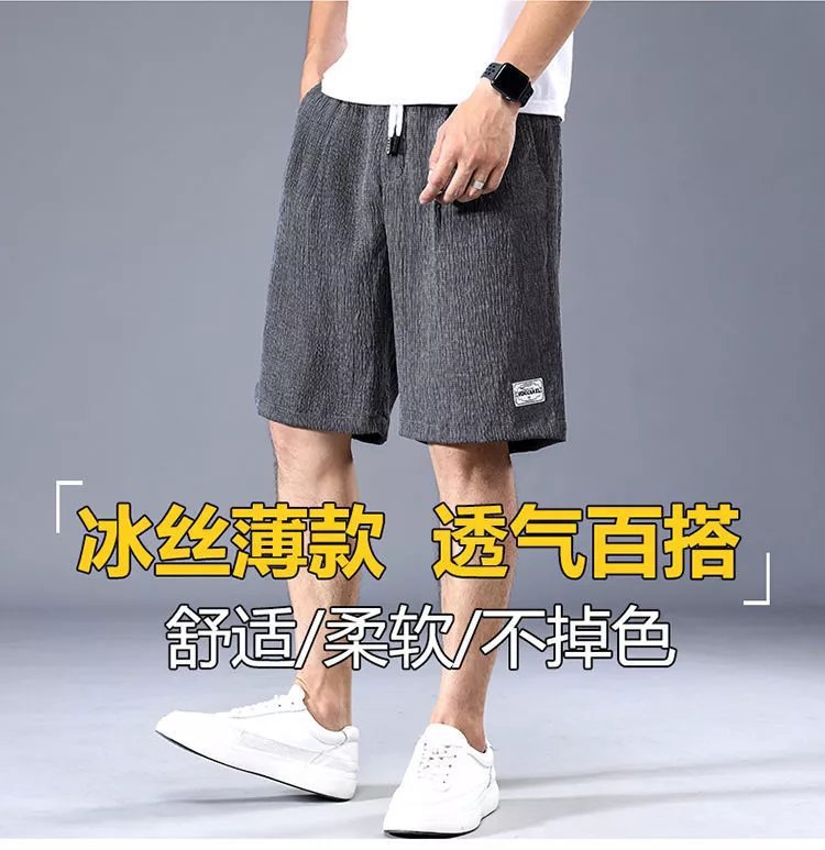 아이스 실크 반바지 남자의 얇은 스포츠 주름 바지 풀린 스트레이트 트렌디 캐주얼 바지 비치 바지스토어 가기