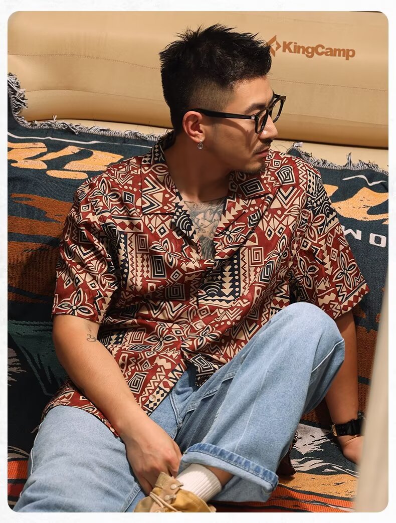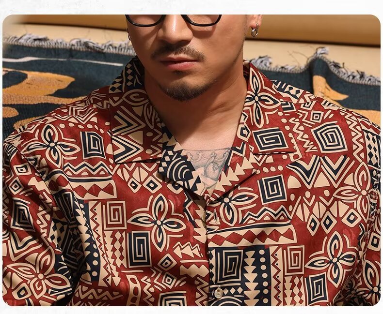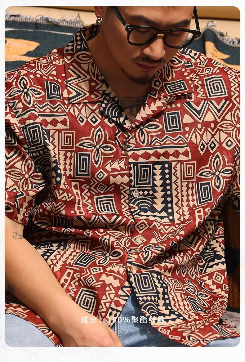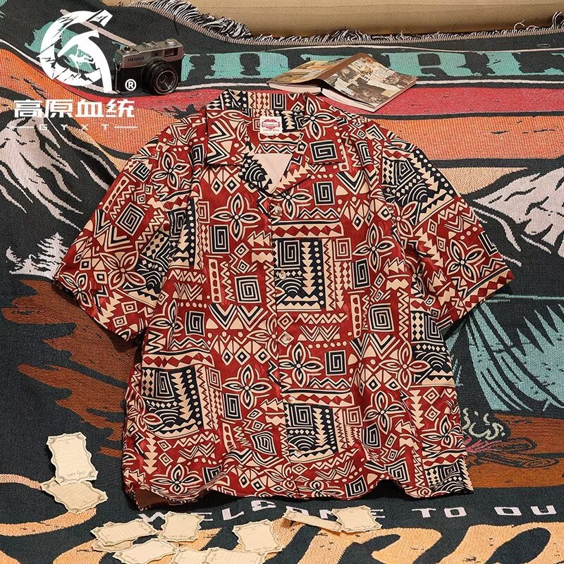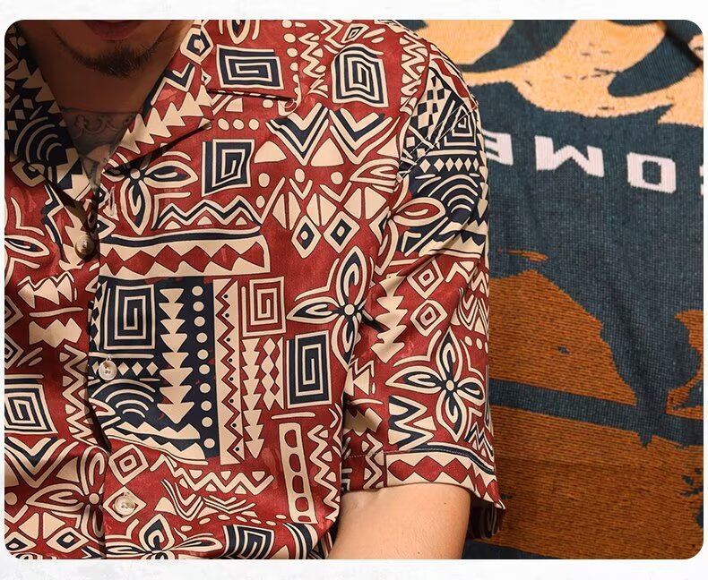 일본 ins 홍콩 스타일 여름 반팔 꽃무늬 셔츠 남성과 여성 복고풍 잘 생긴 하와이 해변 커플 루즈 셔츠