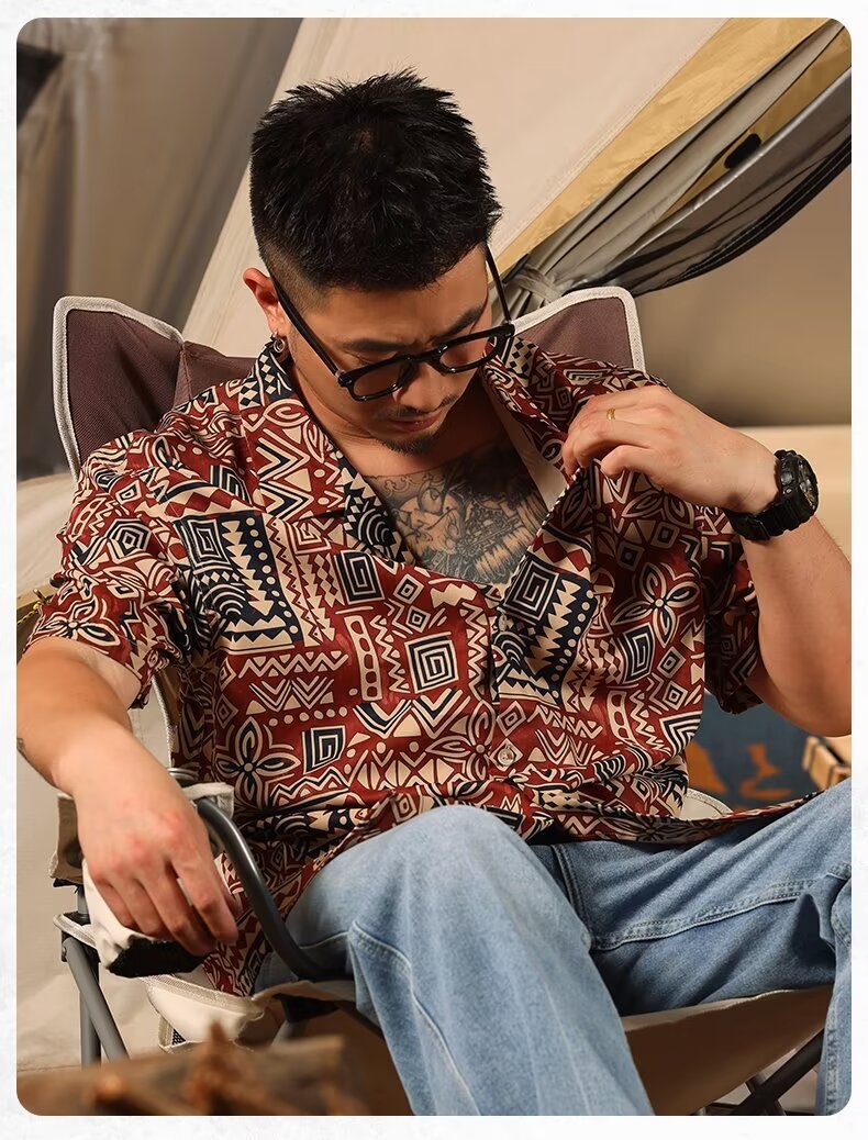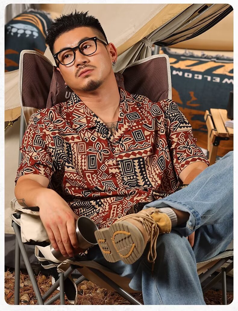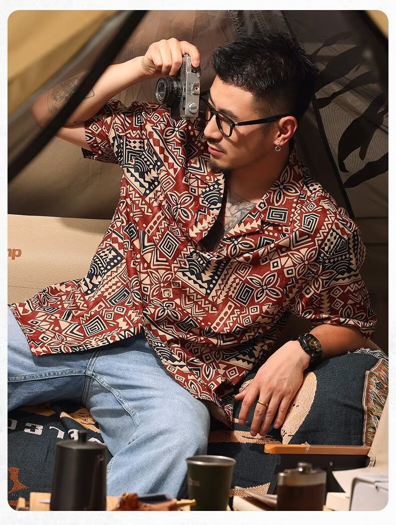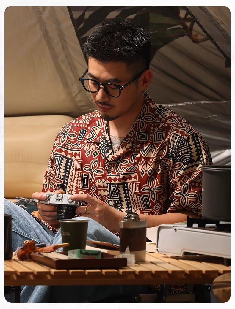 일본 ins 홍콩 스타일 여름 반팔 꽃무늬 셔츠 남성과 여성 복고풍 잘 생긴 하와이 해변 커플 루즈 셔츠