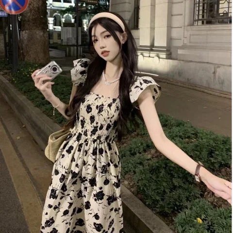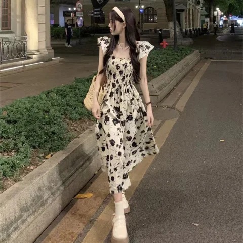홍콩 스타일 슈퍼 요정 모리 스타일 원피스 2024 여름 새로운 스타일 작은 비행 소매 달콤한 우아한 부드러운 스타일 프랑스 스타일 꽃스토어 가기