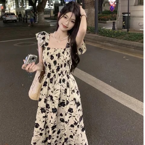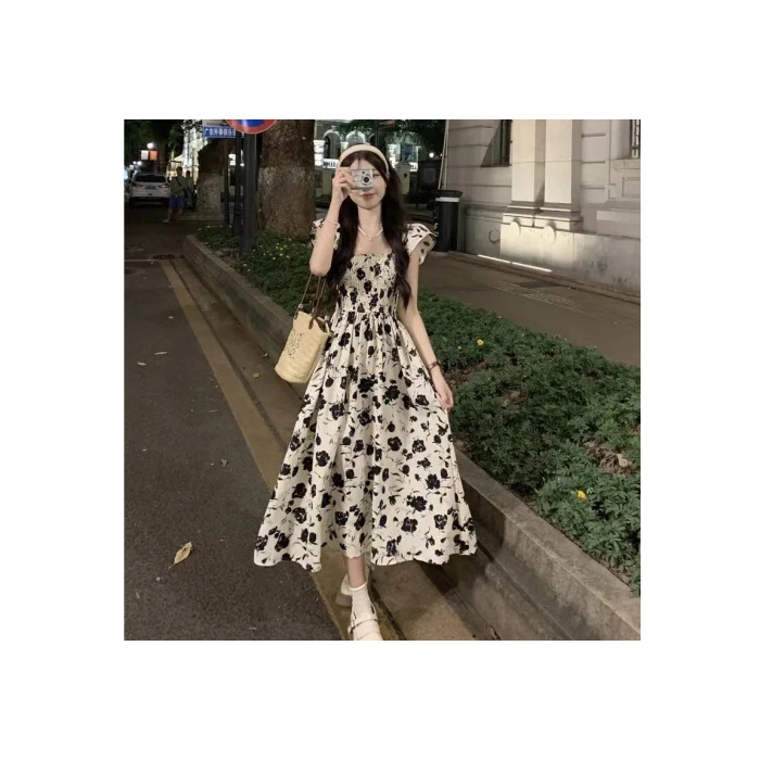 홍콩 스타일 슈퍼 요정 모리 스타일 원피스 2024 여름 새로운 스타일 작은 비행 소매 달콤한 우아한 부드러운 스타일 프랑스 스타일 꽃