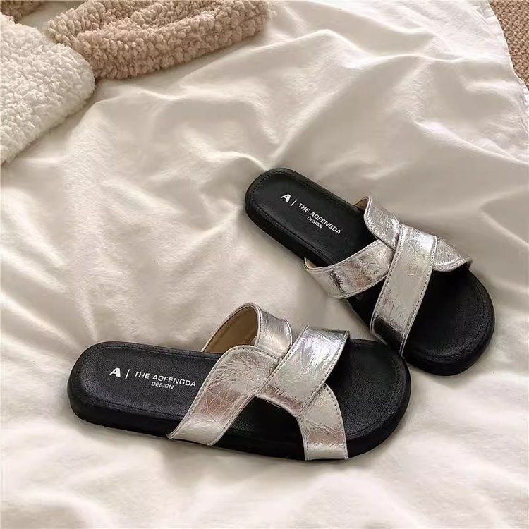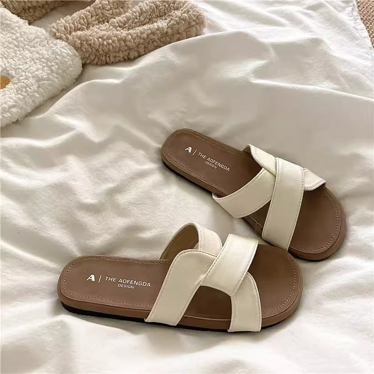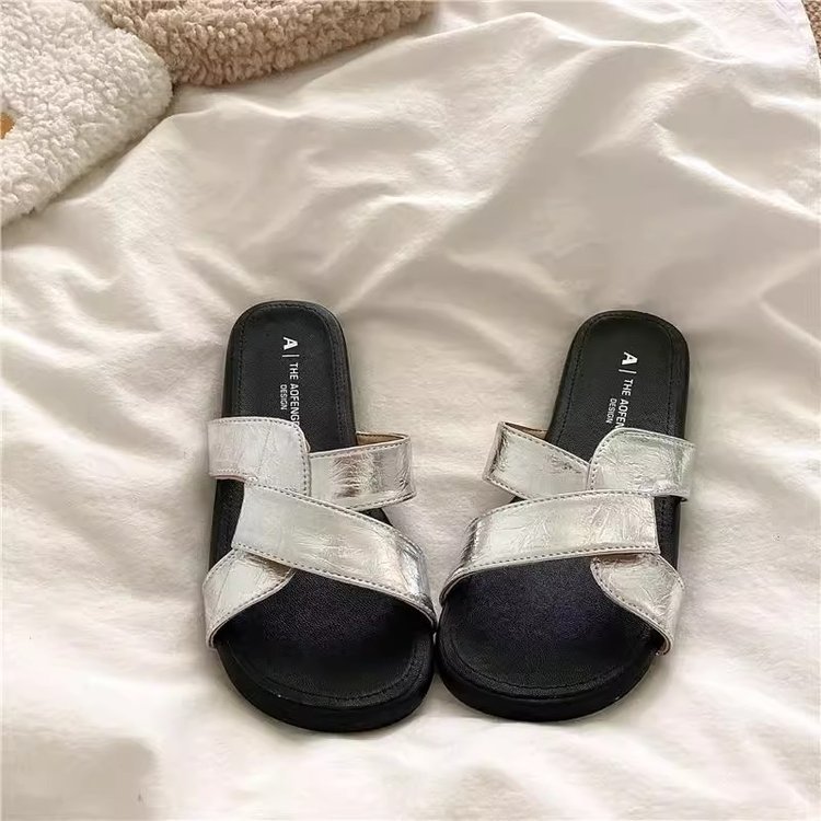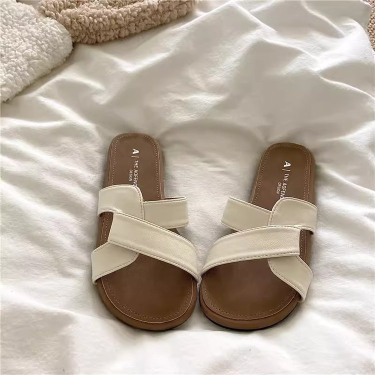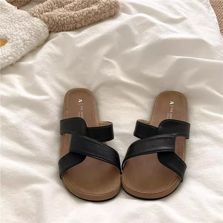 [아르마노] 좋은 질감 틈새 매듭 크로스 슬리퍼 여성 부드러운 야외 여름 해변 샌들