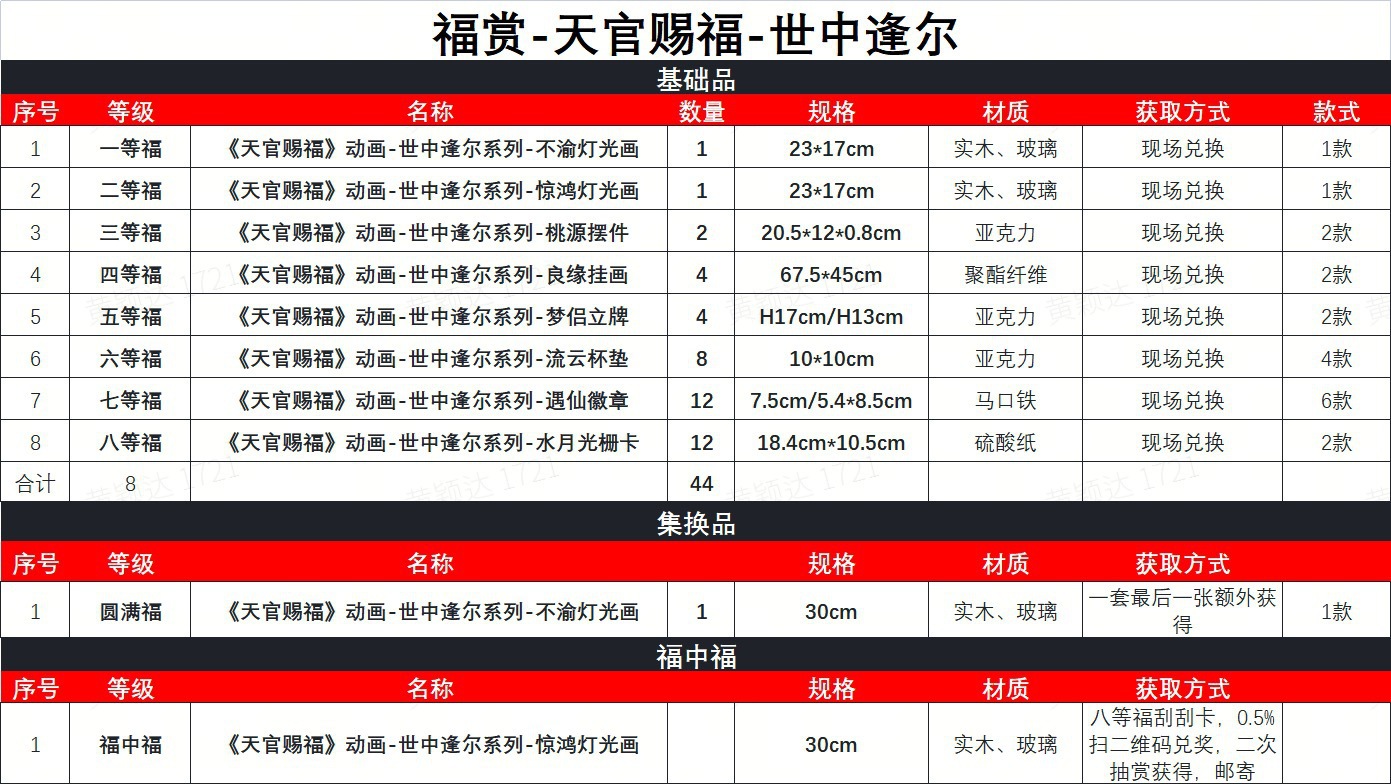 • [44개/세트] 39위안/복수-천관축복-세계시리즈