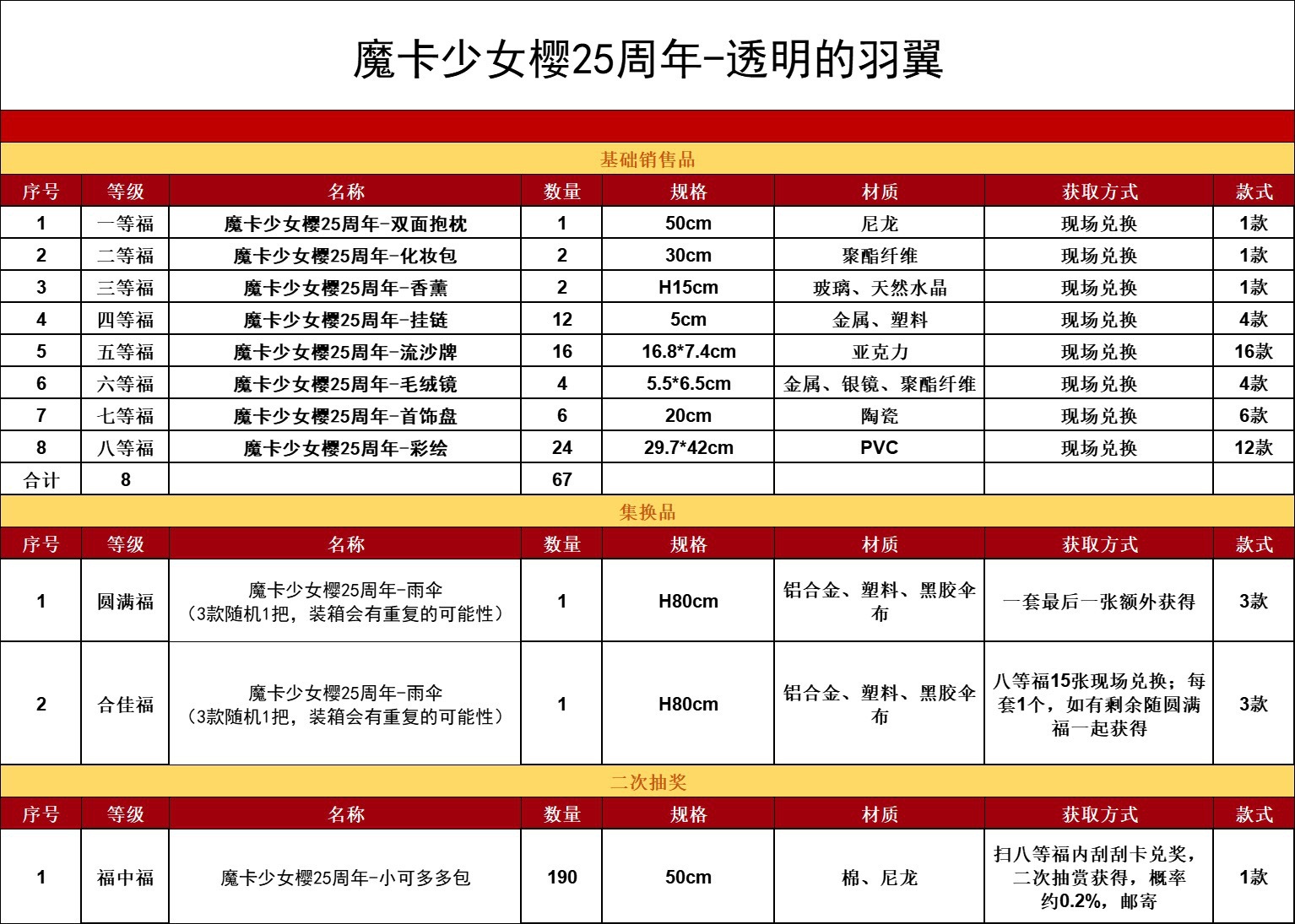 • [67개/세트] 69위안/복권-카드캡터 사쿠라 25주년-투명한 날개