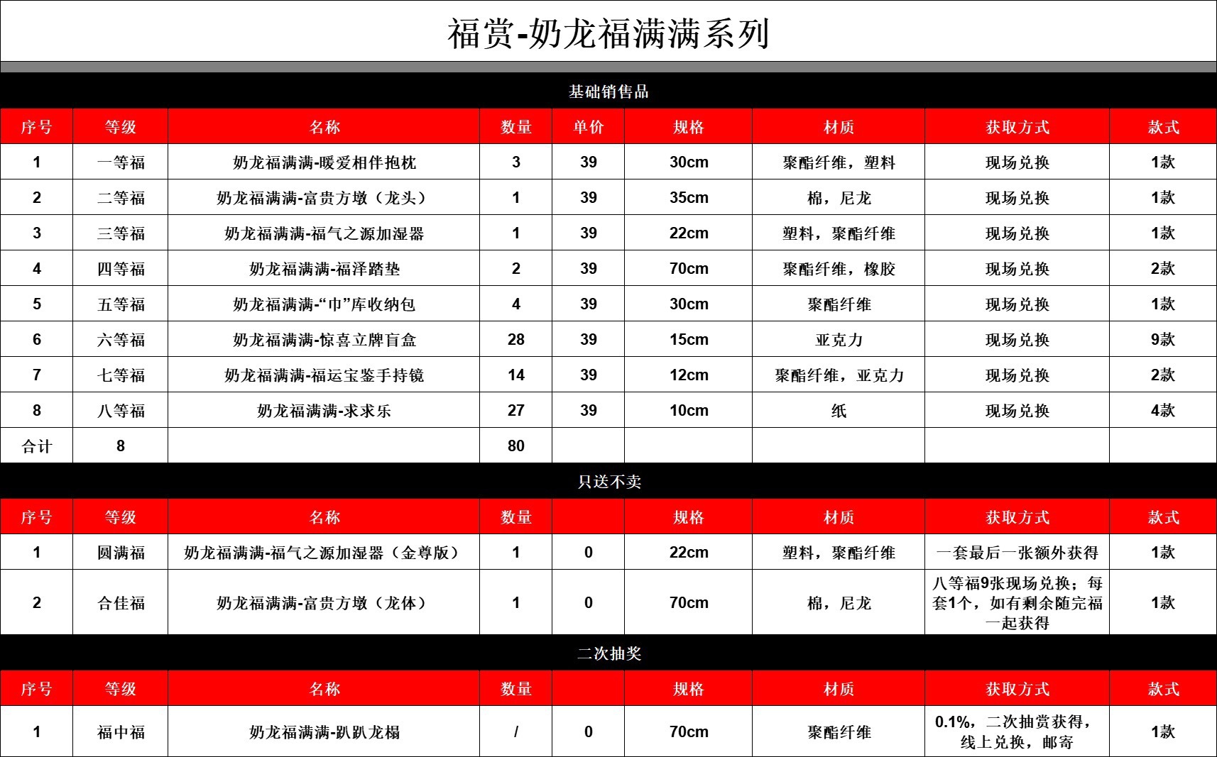• [80개/세트] 39위안/복수-밀크드래곤-푸만만 시리즈