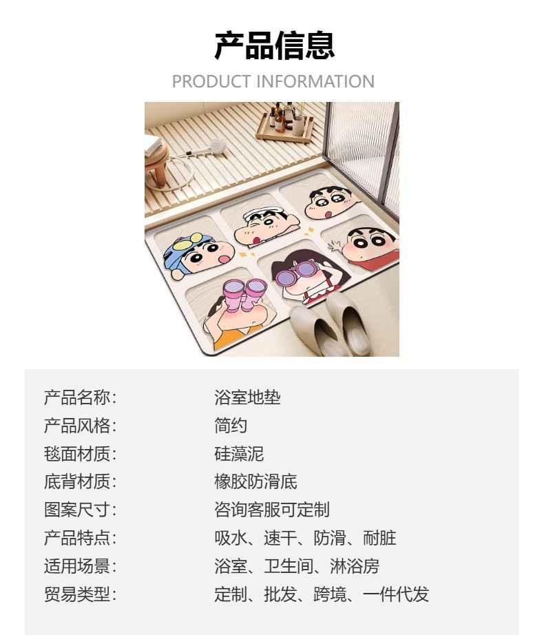 만화 애니메이션 귀여운 크레용 작은 새로운 diatom 진흙 욕실 빠른 건조 미끄럼 방지 매트 흡수성 창조적 인 욕실 방수스토어 가기