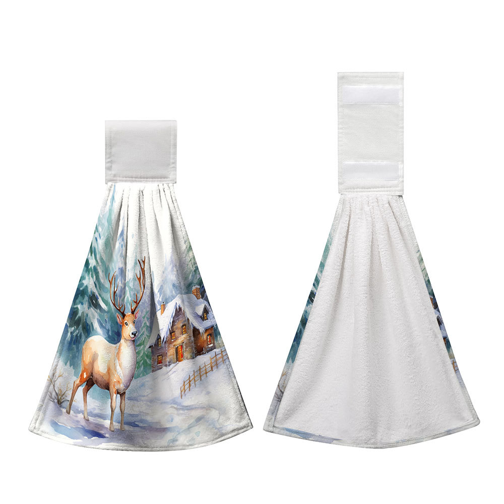 국경 간 크리스마스 인쇄 Microfiber 강한 흡수성 교수형 가정용 주방 닦아 손 수건 화장실 닦아 손 머리