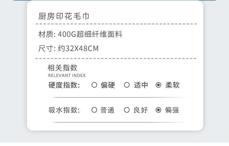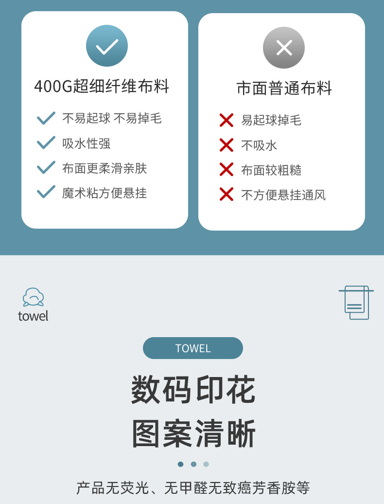 商品面料采用400gsm 高品质超细纤维,具有强吸水效果!