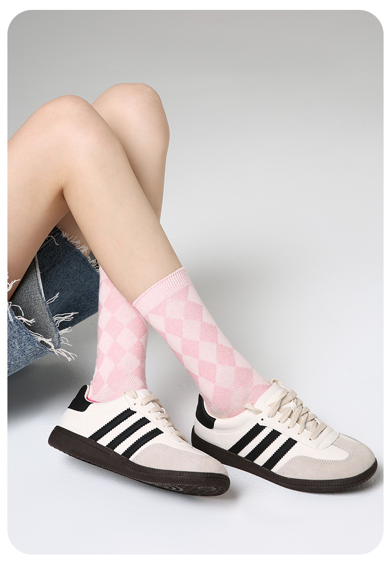 ZYZ 오리지널 튜브 양말 귀여운 여성스러운 사랑 체크 무늬 패션 여성 양말 5 쌍 선물 상자 빗질면 양말 여성