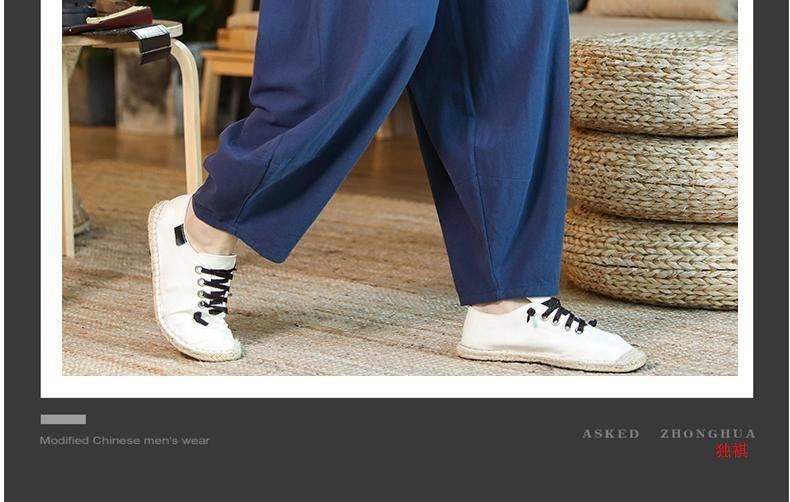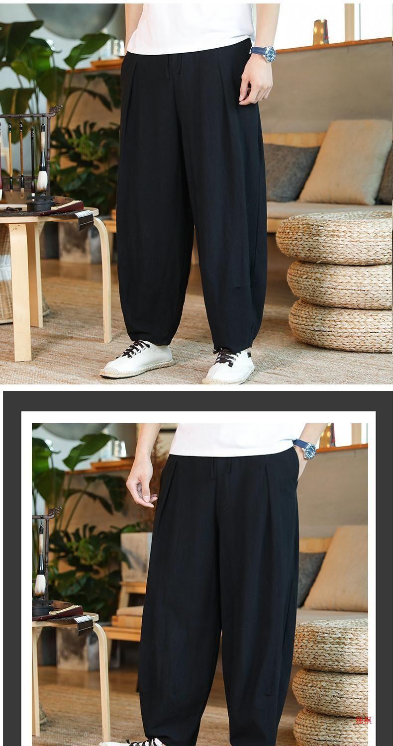 중국 스타일 코튼 린넨 남성 바지 여름 얇은 복고풍 블루머 루즈한 와이드 레그 바지 남성 린넨 캐주얼 바지스토어 가기