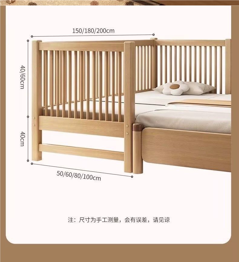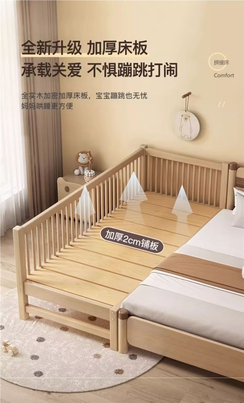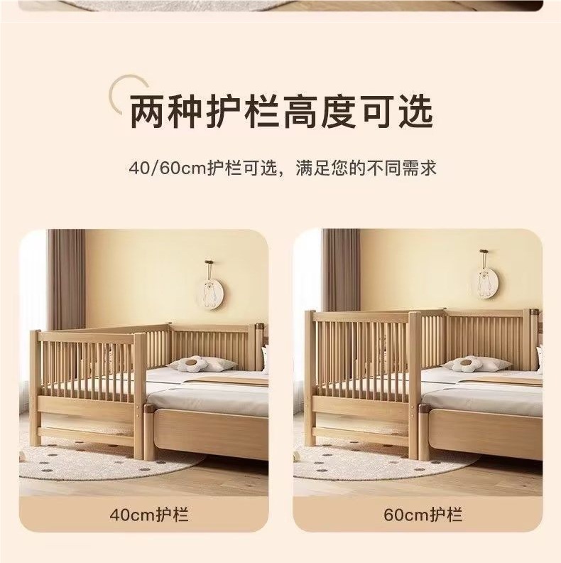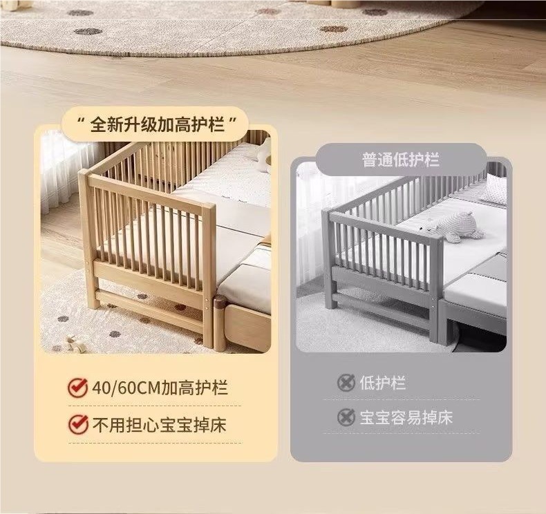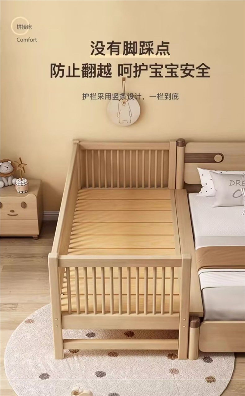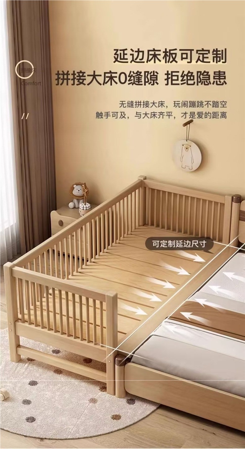 원목 베이비 스플라이스 침대, 확장형 무봉제 어린이 침대, 유아용 침대, 확장형 스플라이스 대형 침대, 가드레일이 있는 어린이용 사이드 침대