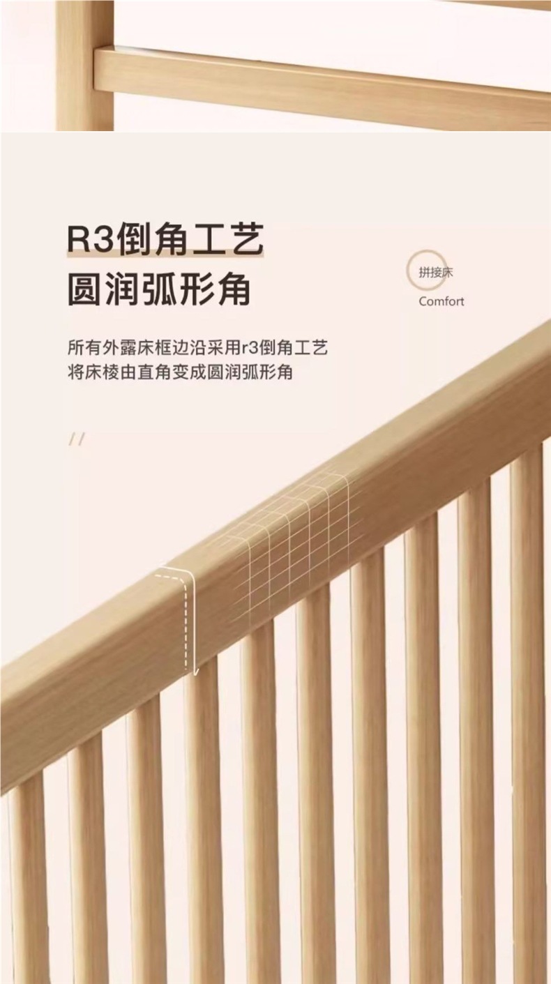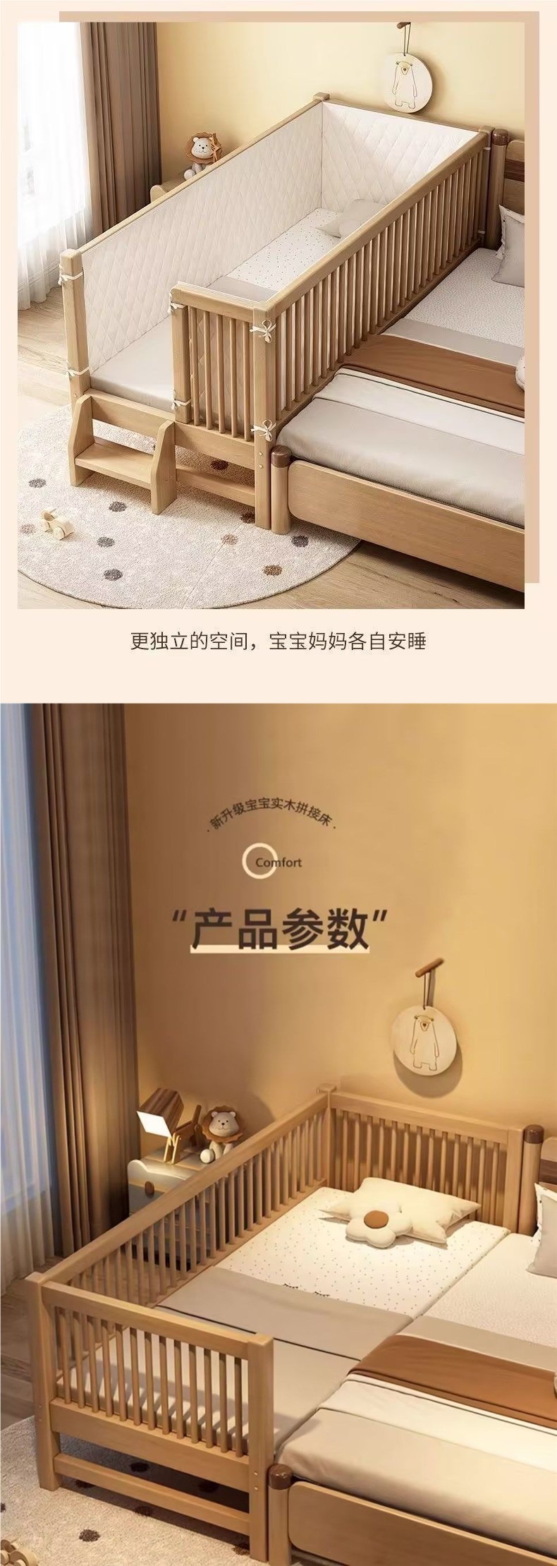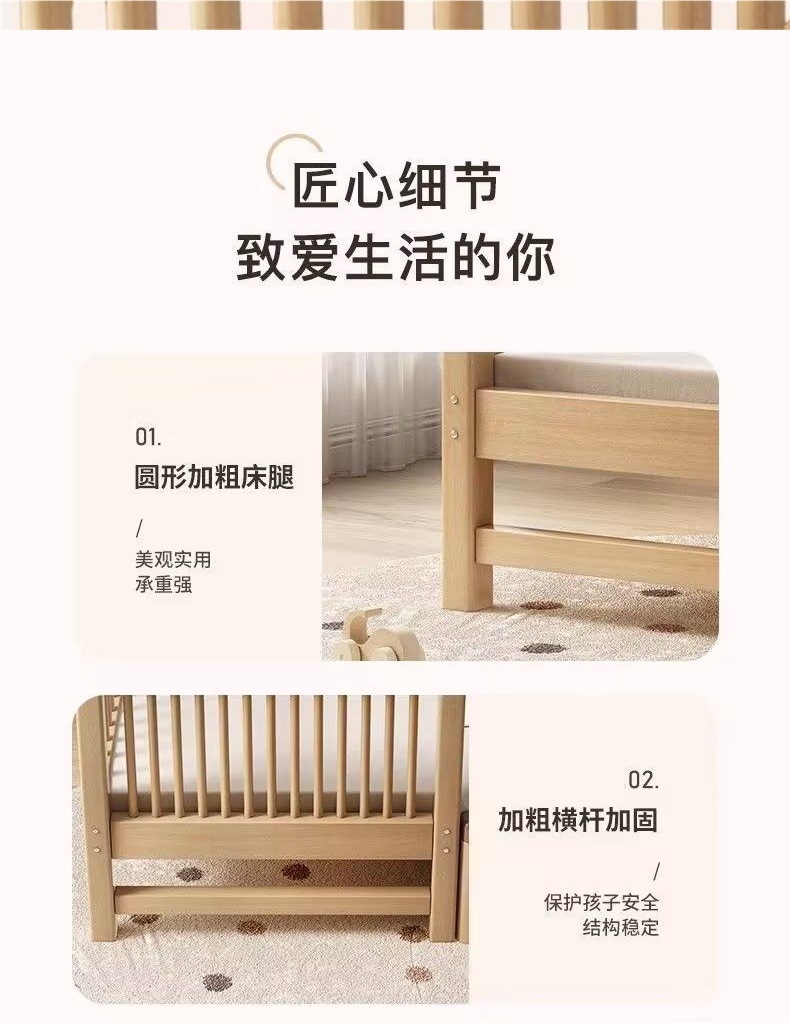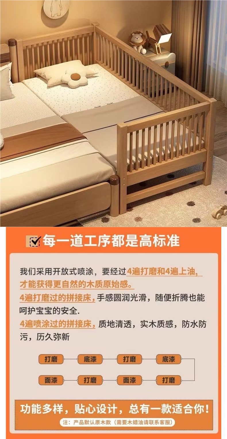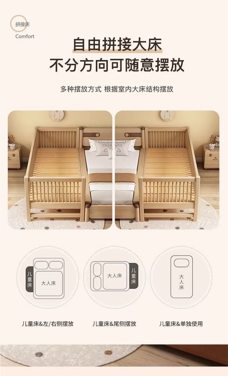 원목 베이비 스플라이스 침대, 확장형 무봉제 어린이 침대, 유아용 침대, 확장형 스플라이스 대형 침대, 가드레일이 있는 어린이용 사이드 침대