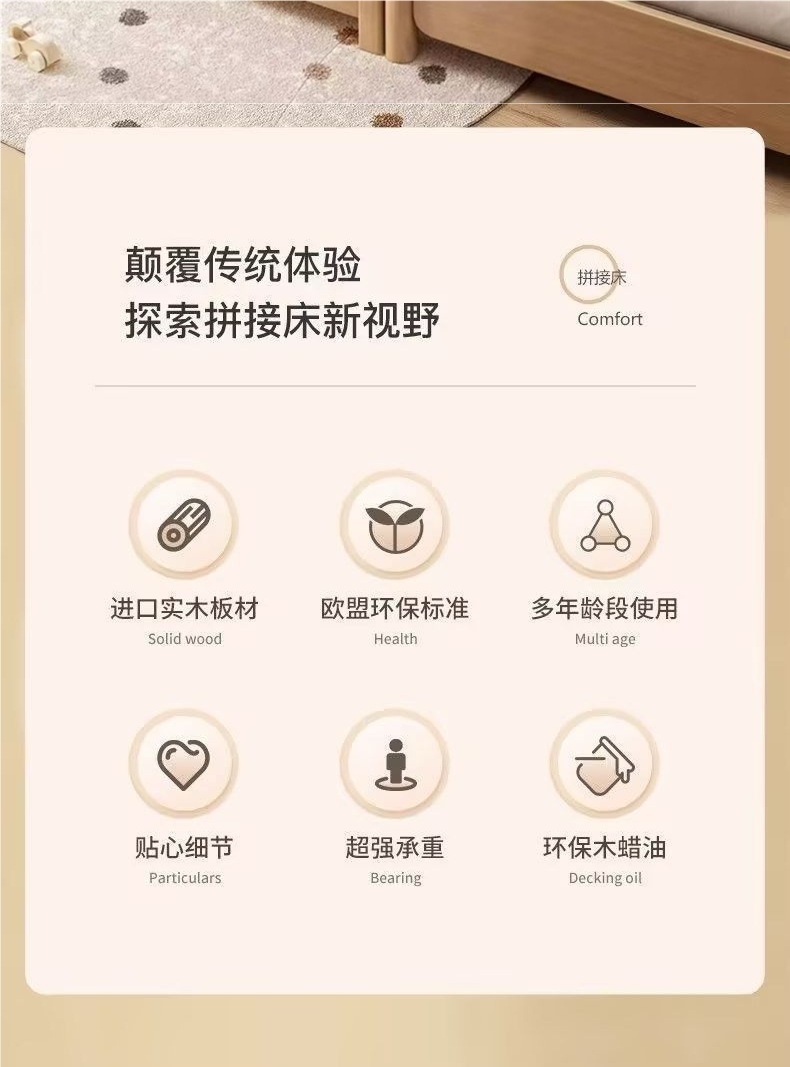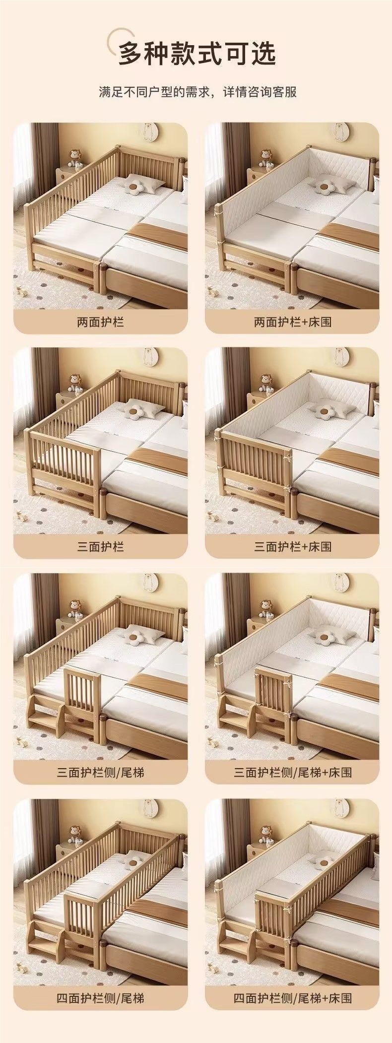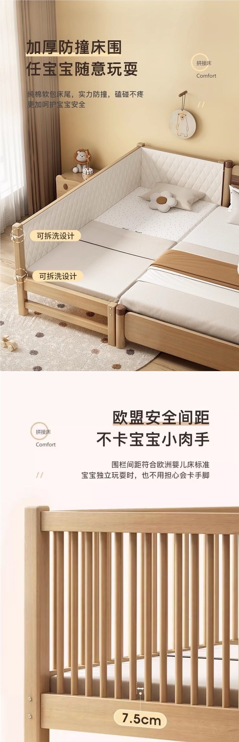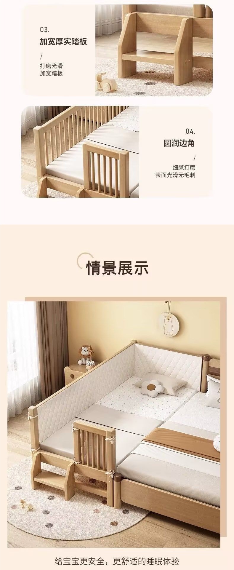 원목 베이비 스플라이스 침대, 확장형 무봉제 어린이 침대, 유아용 침대, 확장형 스플라이스 대형 침대, 가드레일이 있는 어린이용 사이드 침대