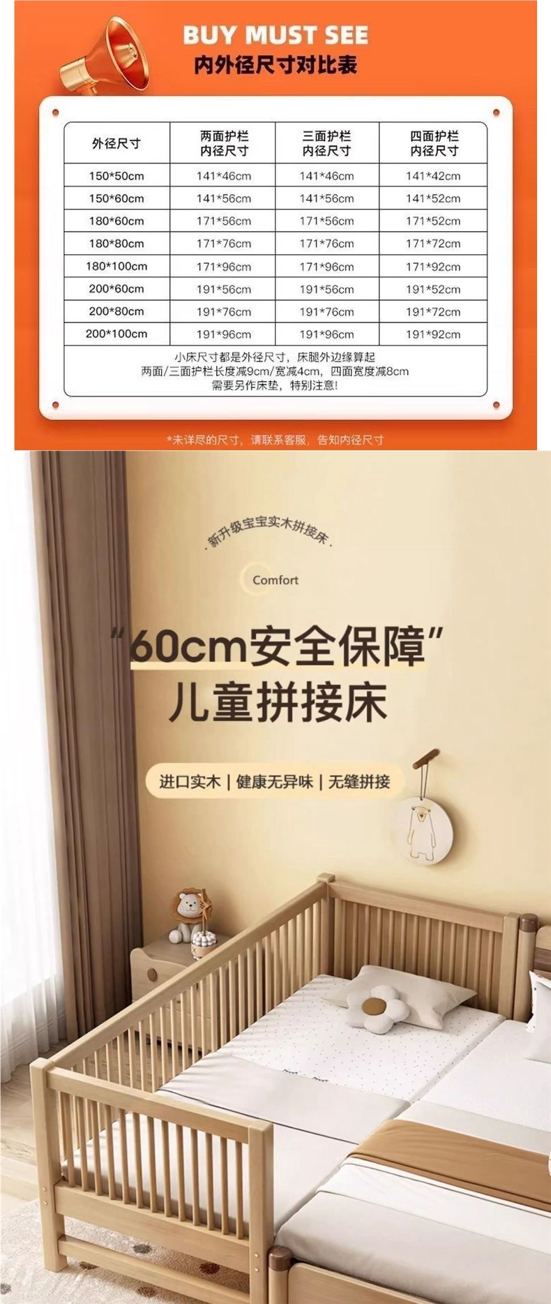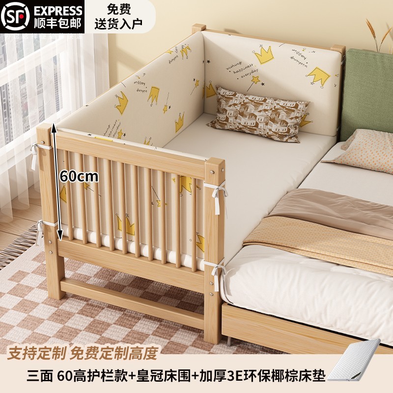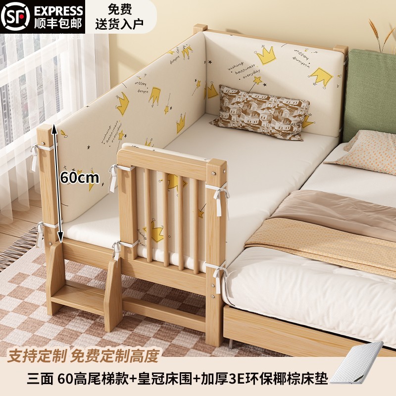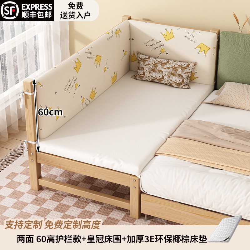 원목 베이비 스플라이스 침대, 확장형 무봉제 어린이 침대, 유아용 침대, 확장형 스플라이스 대형 침대, 가드레일이 있는 어린이용 사이드 침대스토어 가기