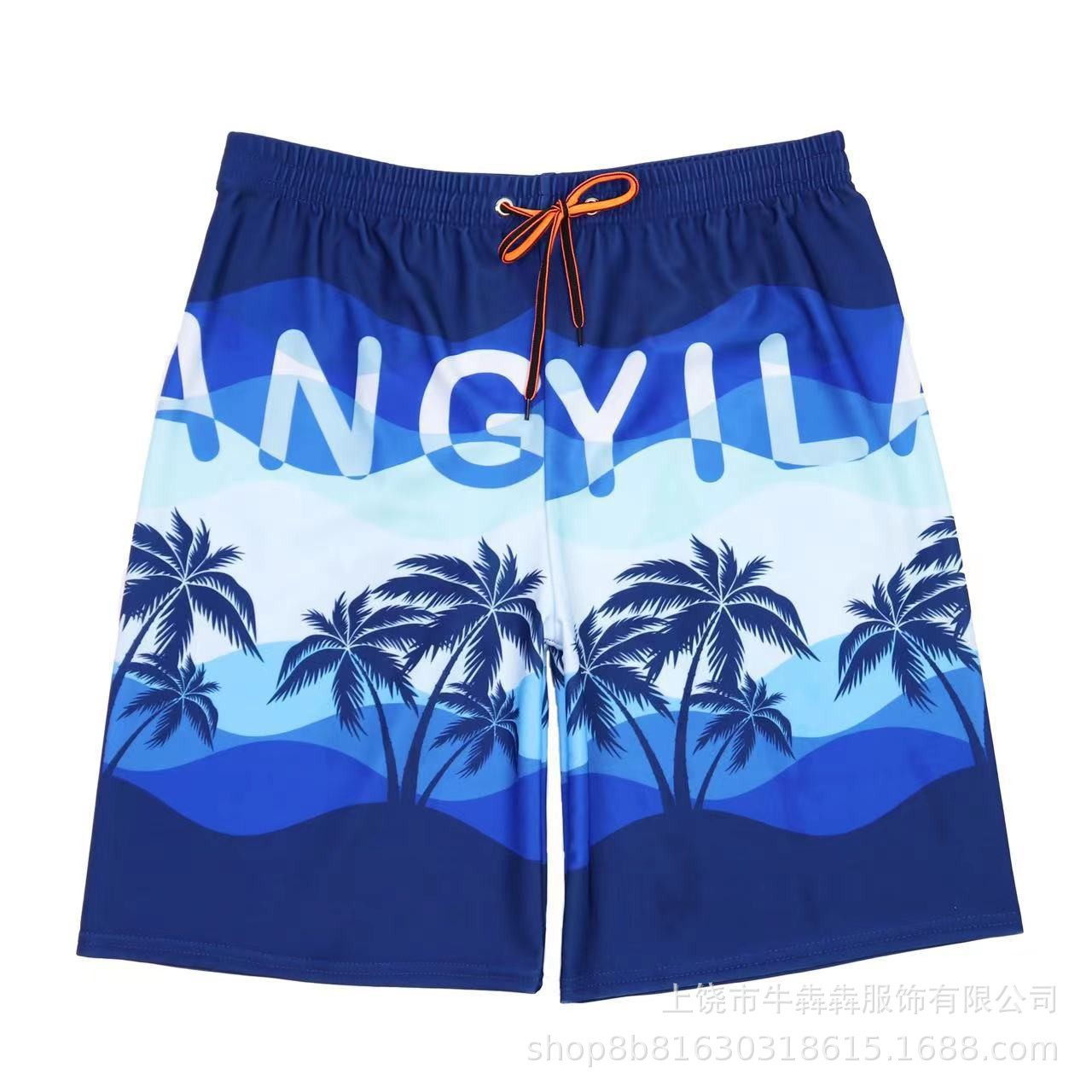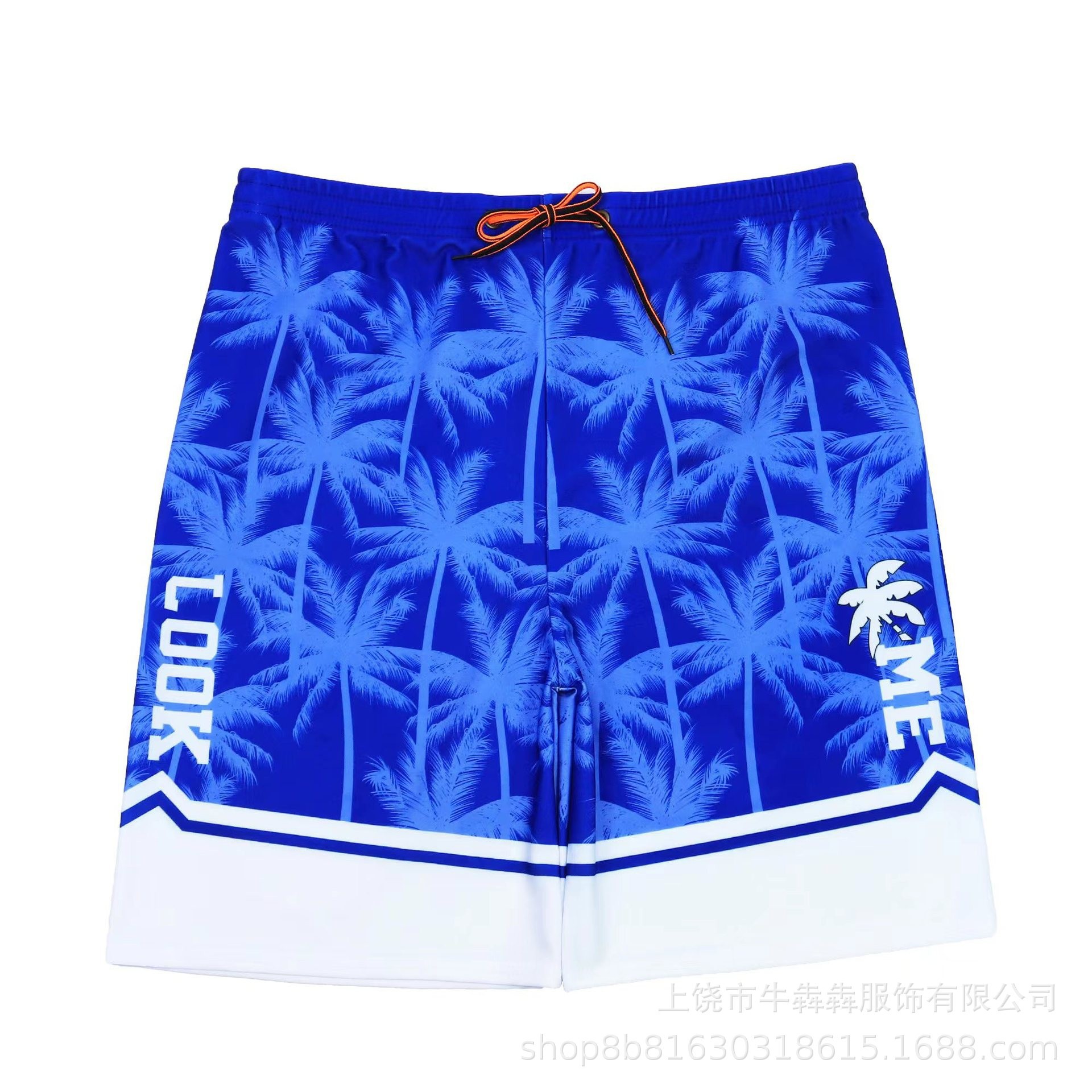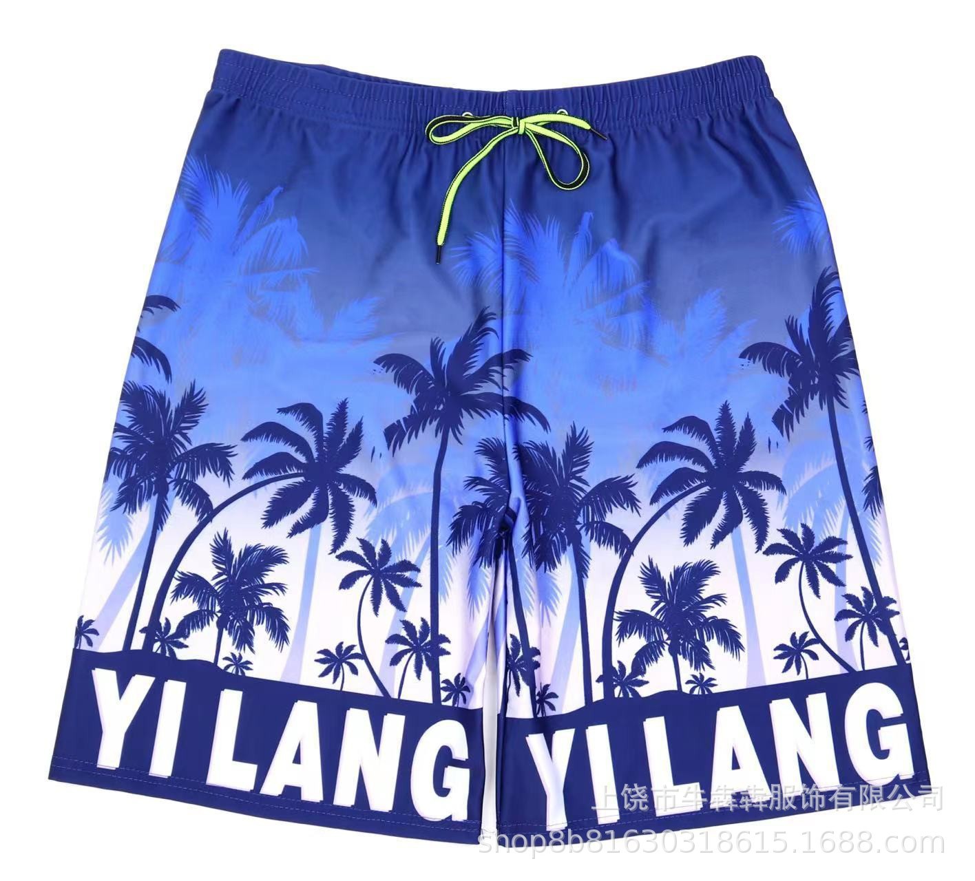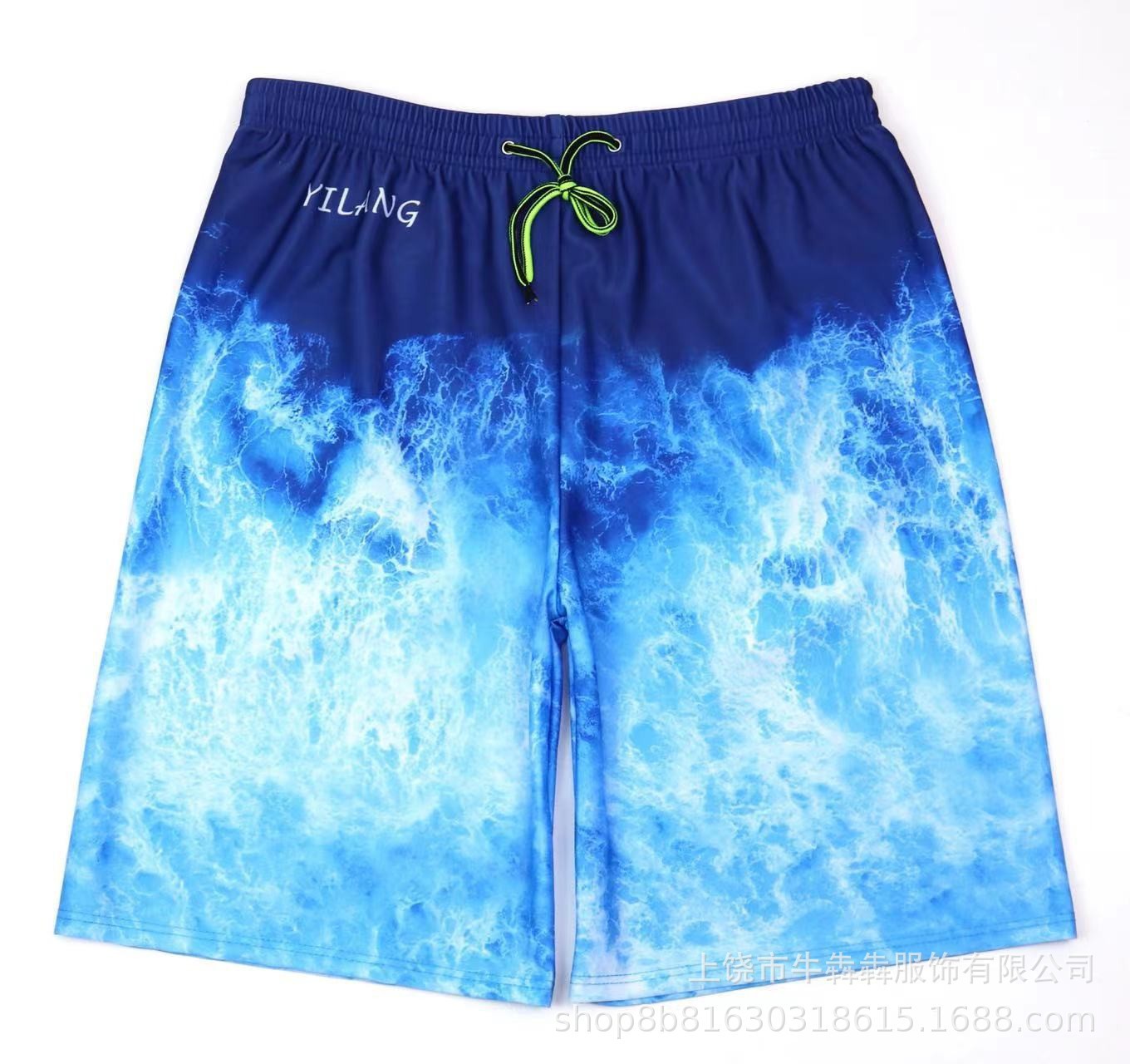 24 여름 새로운 남자 해변 수영 트렁크 느슨한 중간 길이 플러스 사이즈 인쇄 된 패션 스파 서핑