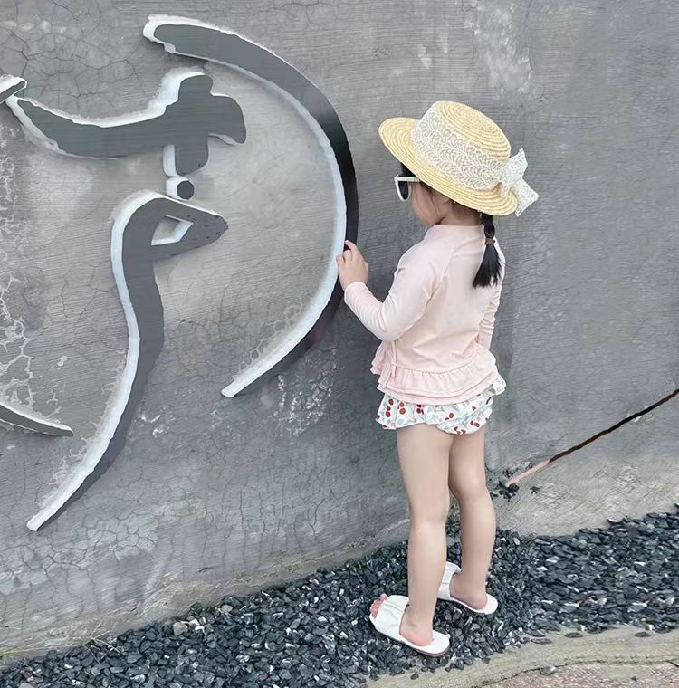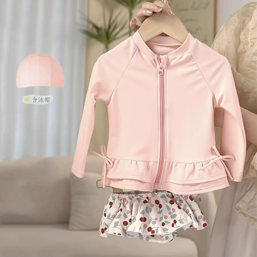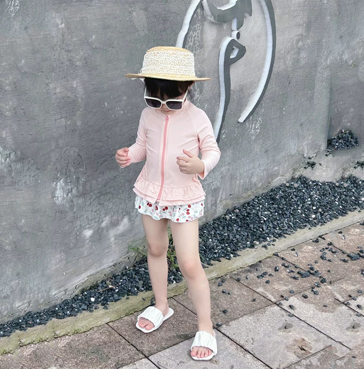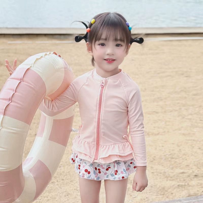 어린이 수영복 소녀 어린이 분할 두 조각 긴 소매 작은 신선한 소녀 한국 스타일 온천 수영복 도매
