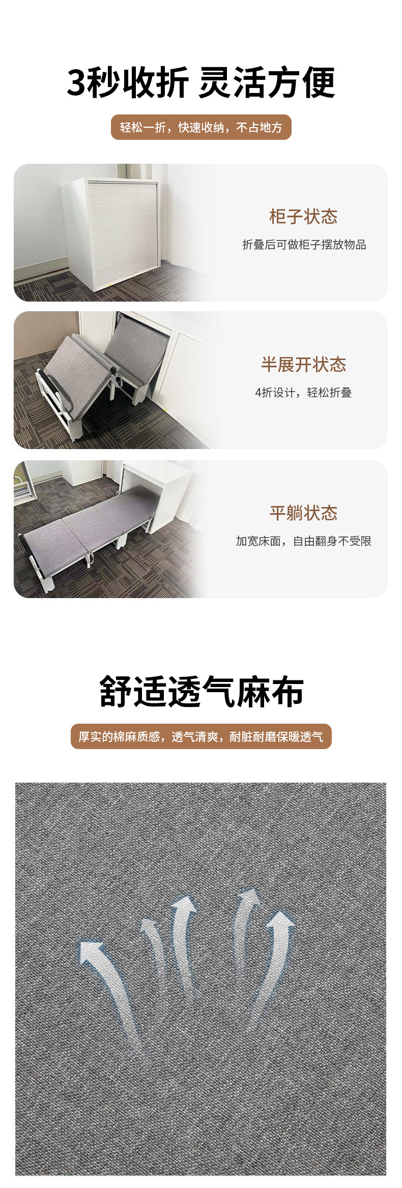 사무실 접이식 침대 학교 싱글 낮잠 침대 가정용 병원 안락 의자 접이식 캠프 침대 홈 케어 침대 도매스토어 가기