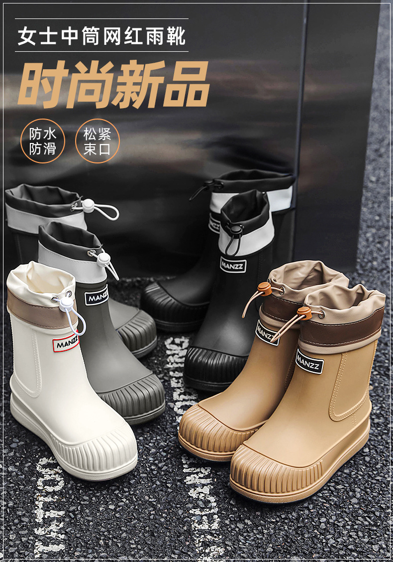 국경 간 대외 무역 일본과 한국 싱글 인터넷 인기 패션 중간 배럴 비 신발 여성 방수 신발 비 슬립 장화 번들 신발 고무 신발