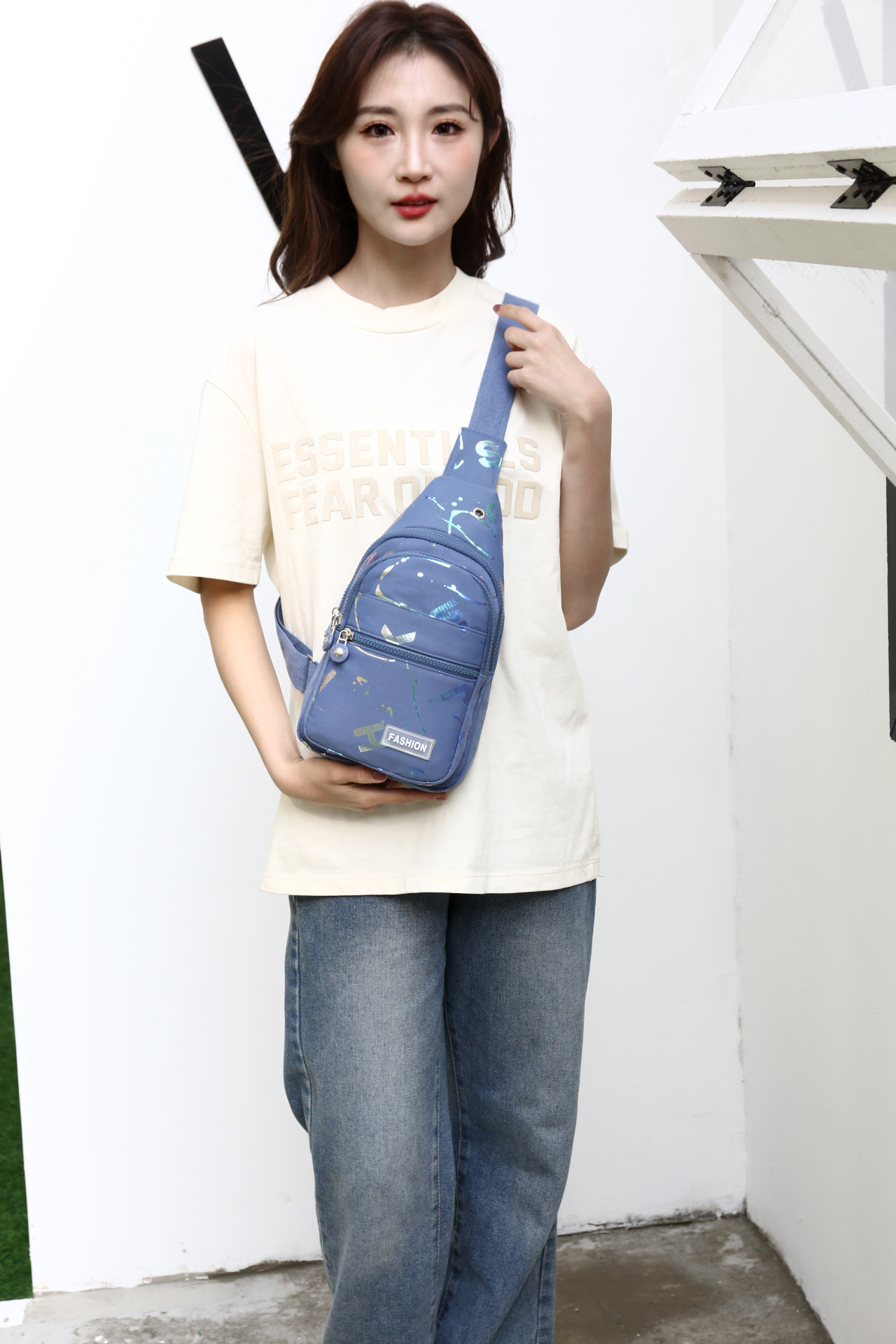 새로운 야외 캐주얼 다기능 어깨 크로스 바디 여성 배낭 옥스포드 천 크로스 바디 남성 가슴 가방 7086스토어 가기