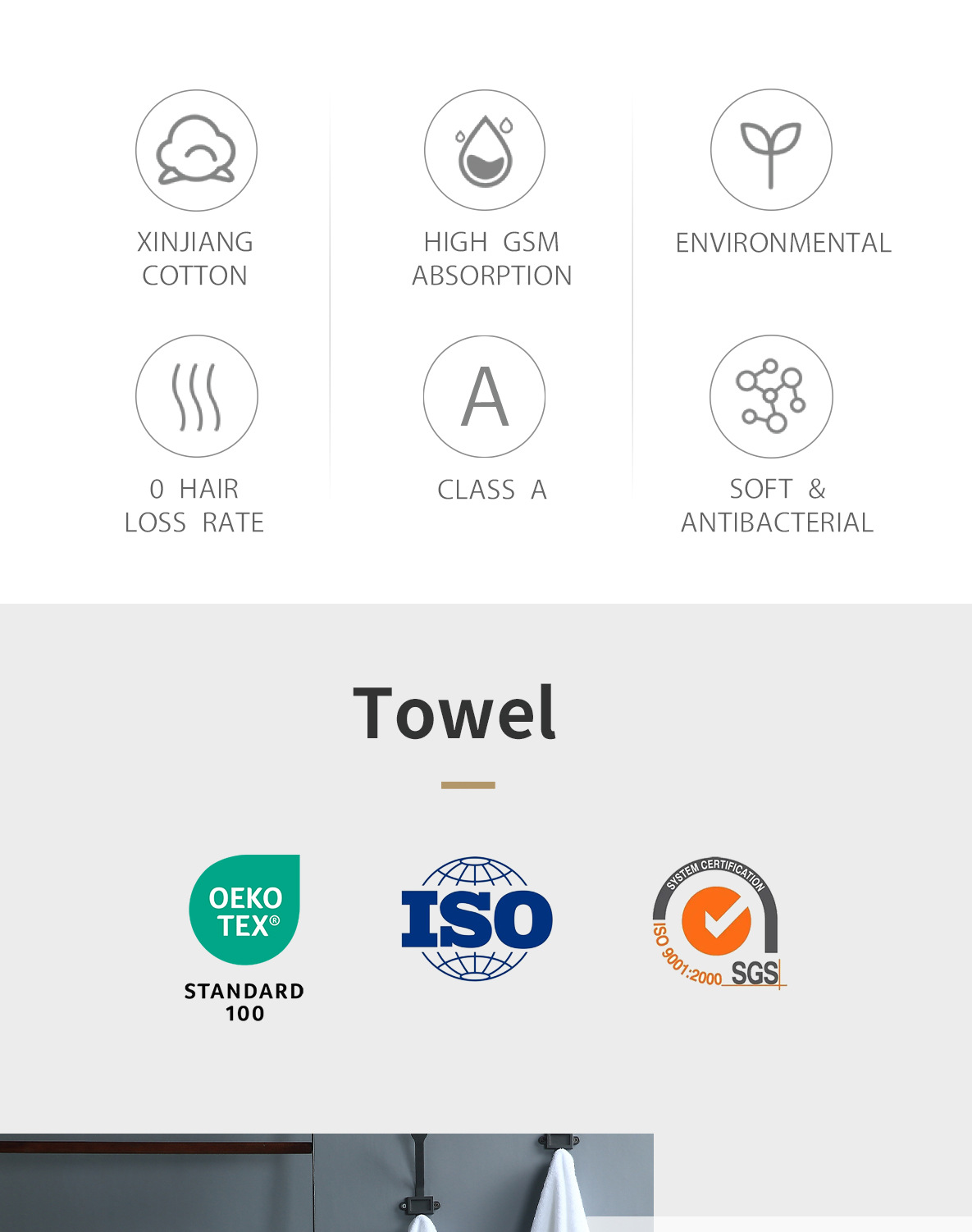 호텔 화이트 코튼 자카드 맞춤형 로고 손 목욕 타월 세트