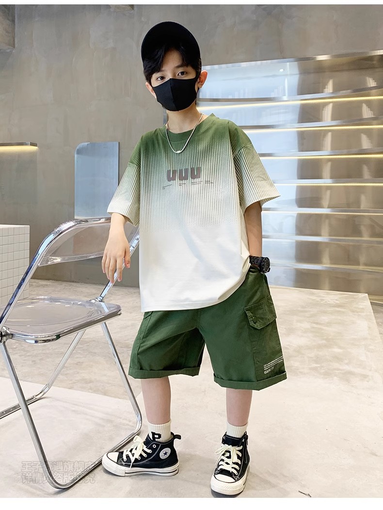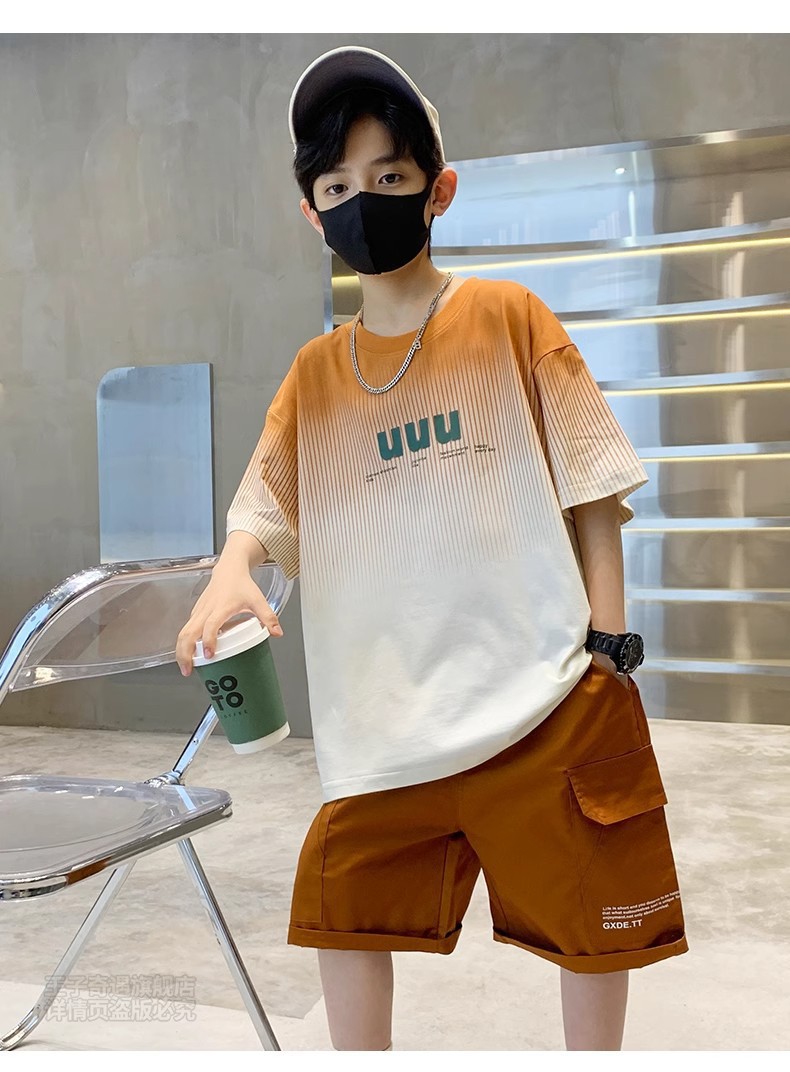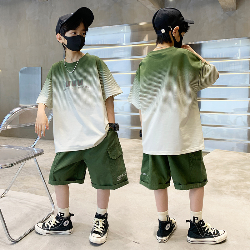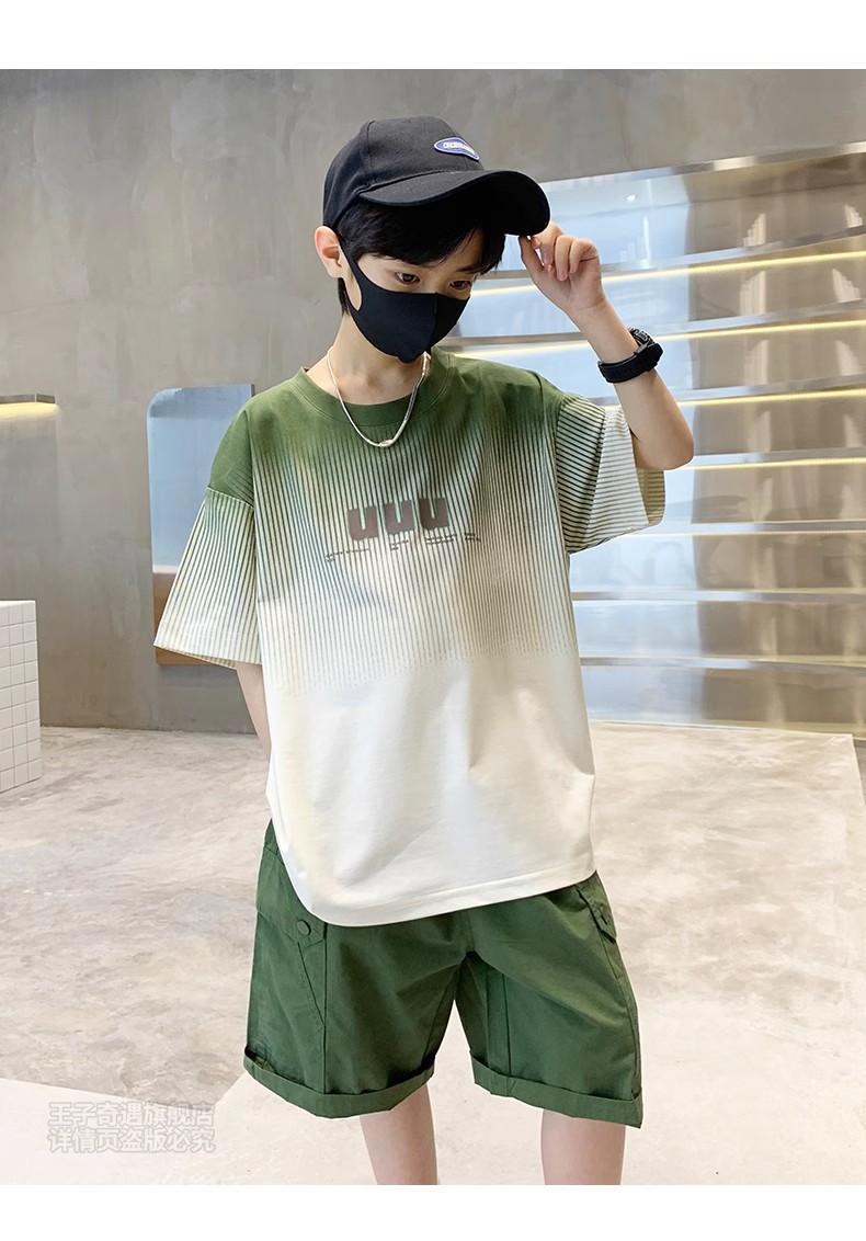남학생 '반소매 여름 빅 어린이 2024 년 새 어린이 여름 원피스 소년 세련 된 잘 생긴 패셔너블 쿨 반팔 세트스토어 가기