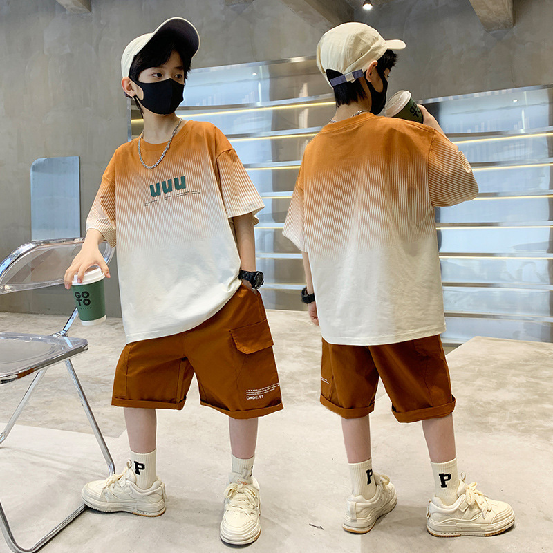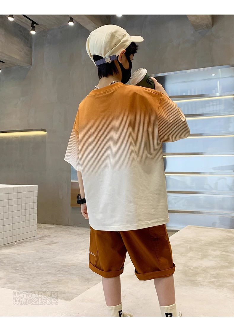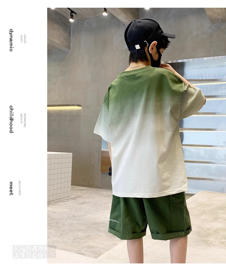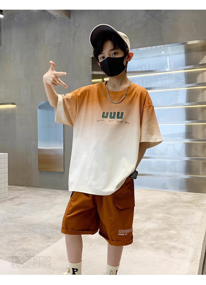 남학생 '반소매 여름 빅 어린이 2024 년 새 어린이 여름 원피스 소년 세련 된 잘 생긴 패셔너블 쿨 반팔 세트스토어 가기